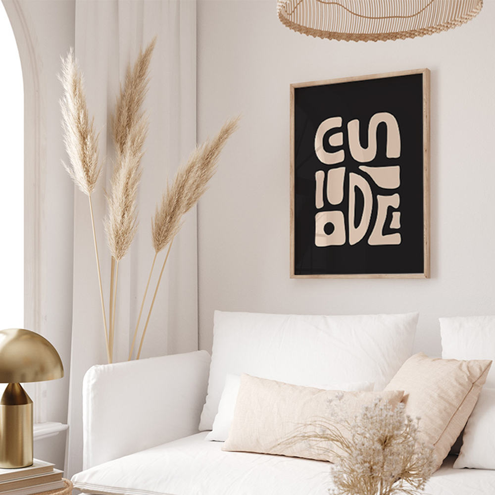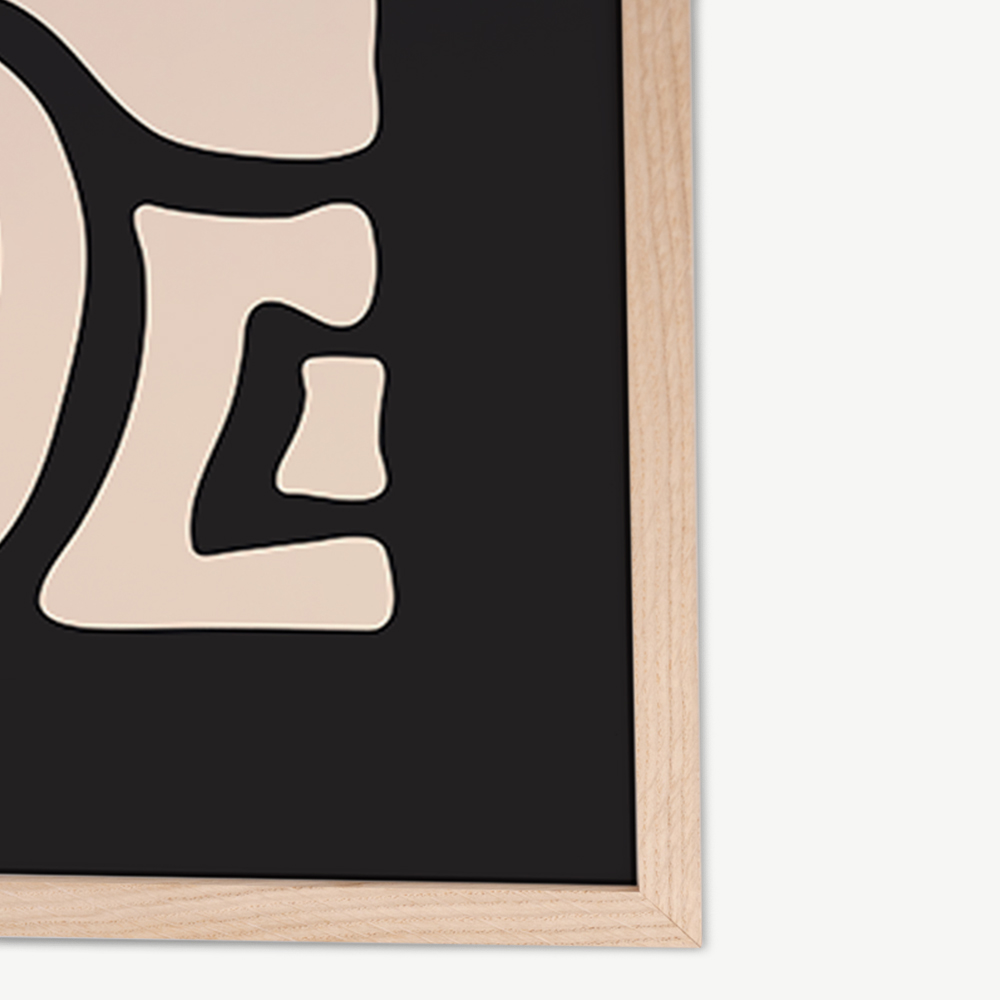 The Blurred Text Wall Art is framed in natural beechwood, known for its durability and natural beauty. The wooden frame enhances the abstract design, adding depth and dimension, making it a true focal point in your interior.