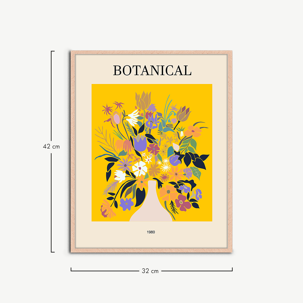 The Botanical Wall Art features a natural beechwood frame, known for its durability and natural beauty. This wooden frame enhances the artwork by adding depth and dimension, making it a true focal point in your interior space.