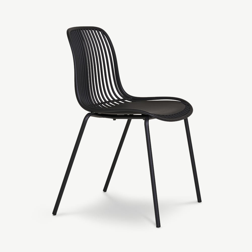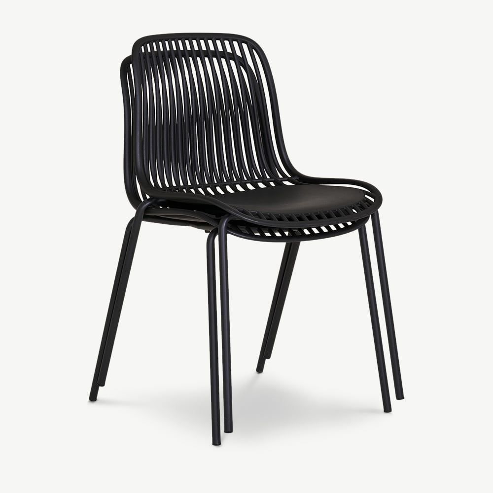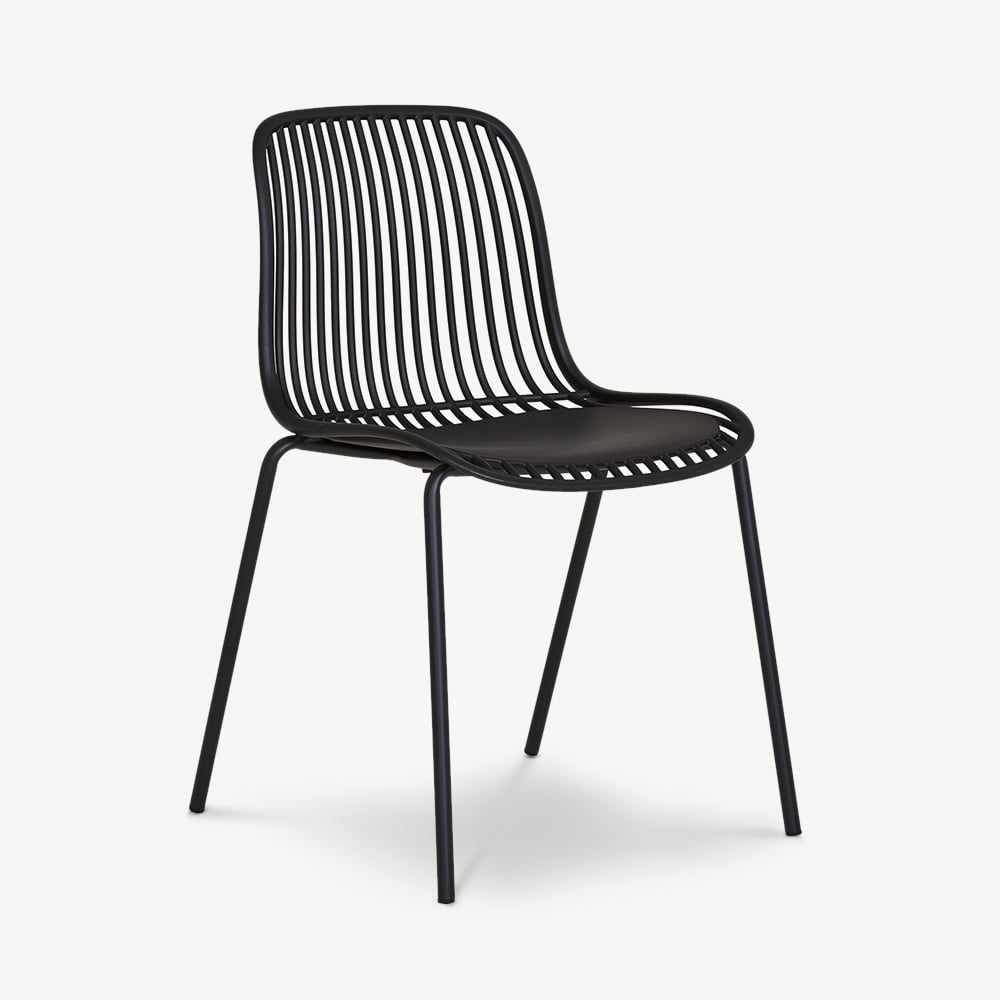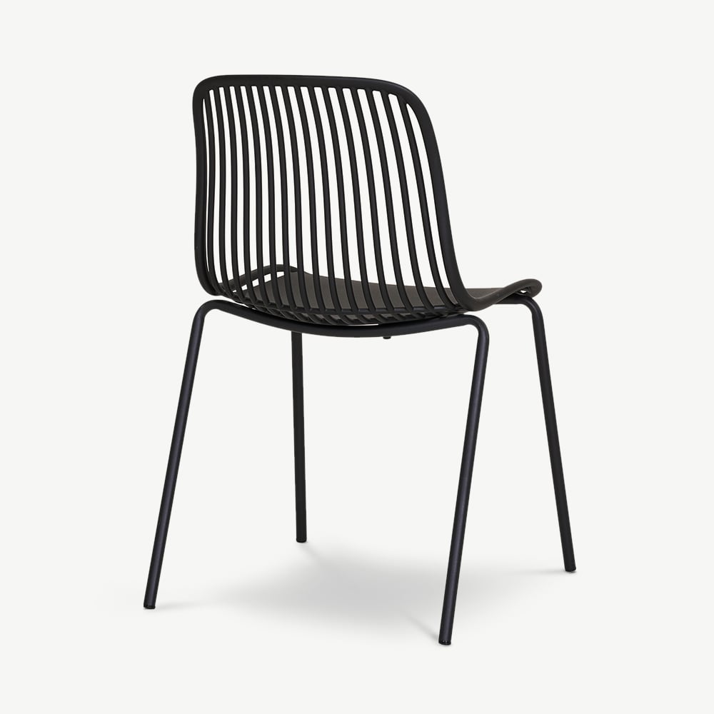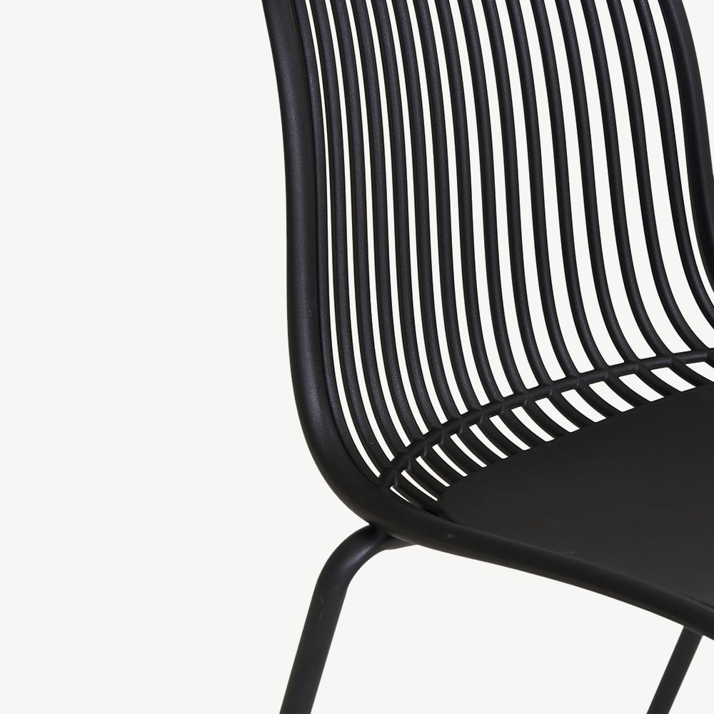 Made from durable polypropylene, the Brady Chair is designed for outdoor use without compromising on style. The slatted backrest provides excellent ventilation, offering comfort even on warm days. Finished in an elegant black hue, it effortlessly complements modern outdoor furniture, pairing well with wood, metal, or glass dining tables. Whether used in an industrial, minimalist, or contemporary setting, its timeless colour enhances any space.