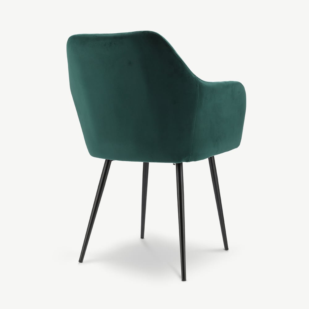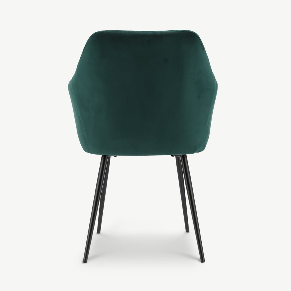 Brando Green Velvet Ribbed Dining Armchair with Black Metal Legs