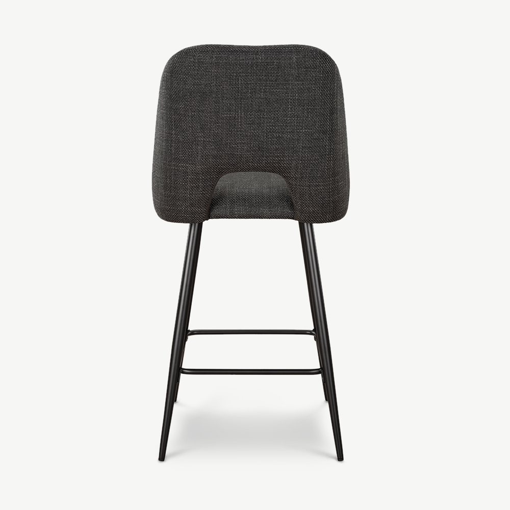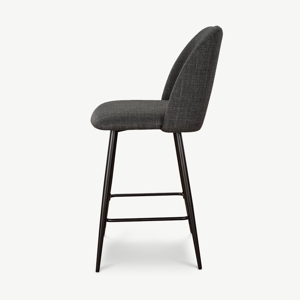 Caio Dark Grey Fabric Kitchen Stool with Black Coated Metal Legs and Footrest
