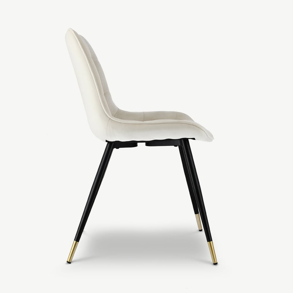 Chloé White Velvet Quilted Dining Chair with Black Coated Metal Legs