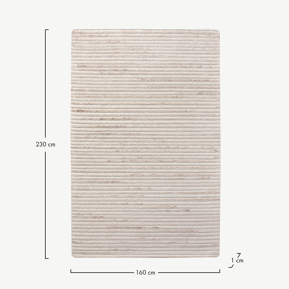 At a generous dimension of 160x230 cm, the Clara Rug isn't merely a floor addition—it’s an artistic statement. Its expansive coverage is perfect for a variety of settings, be it enhancing a cozy corner in the living room or introducing a touch of soft luxury to a bedroom.