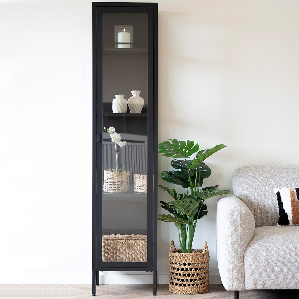 Darwin Black Metal Display Cabinet with Glass Door