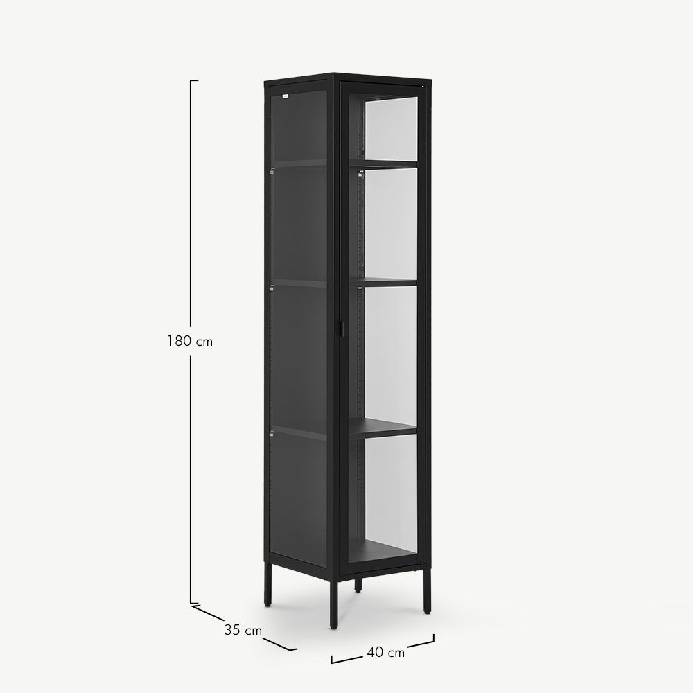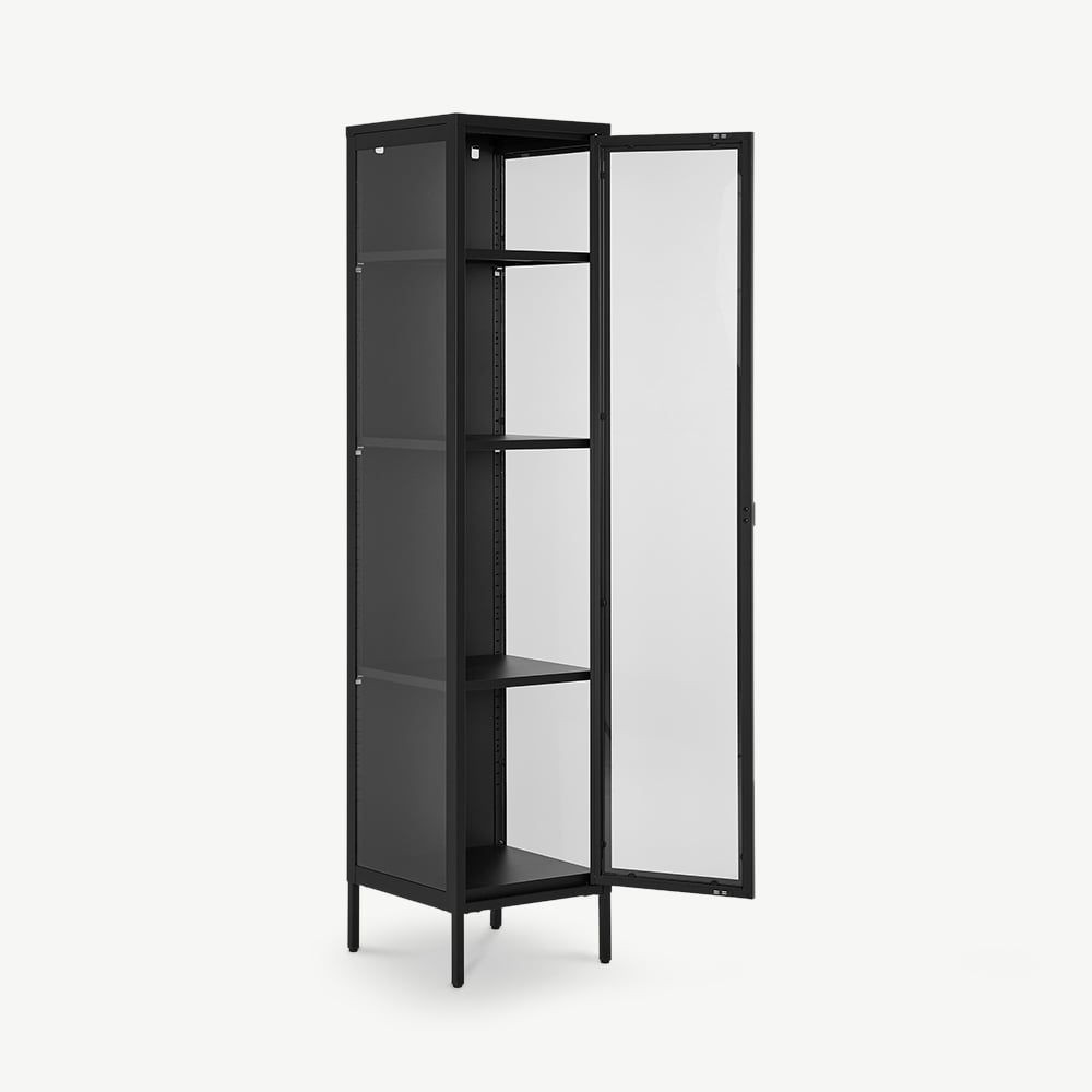 Darwin 1 Door Display Cabinet, Glass & Black Metal