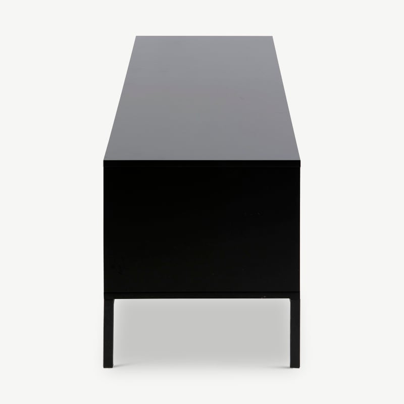 Equipped with two push-to-open doors on metal runners, the Dover TV stand provides smooth access to concealed storage. This design keeps the front clean and minimalist, allowing you to access essentials with a simple push, making it an ideal choice for a streamlined setup.