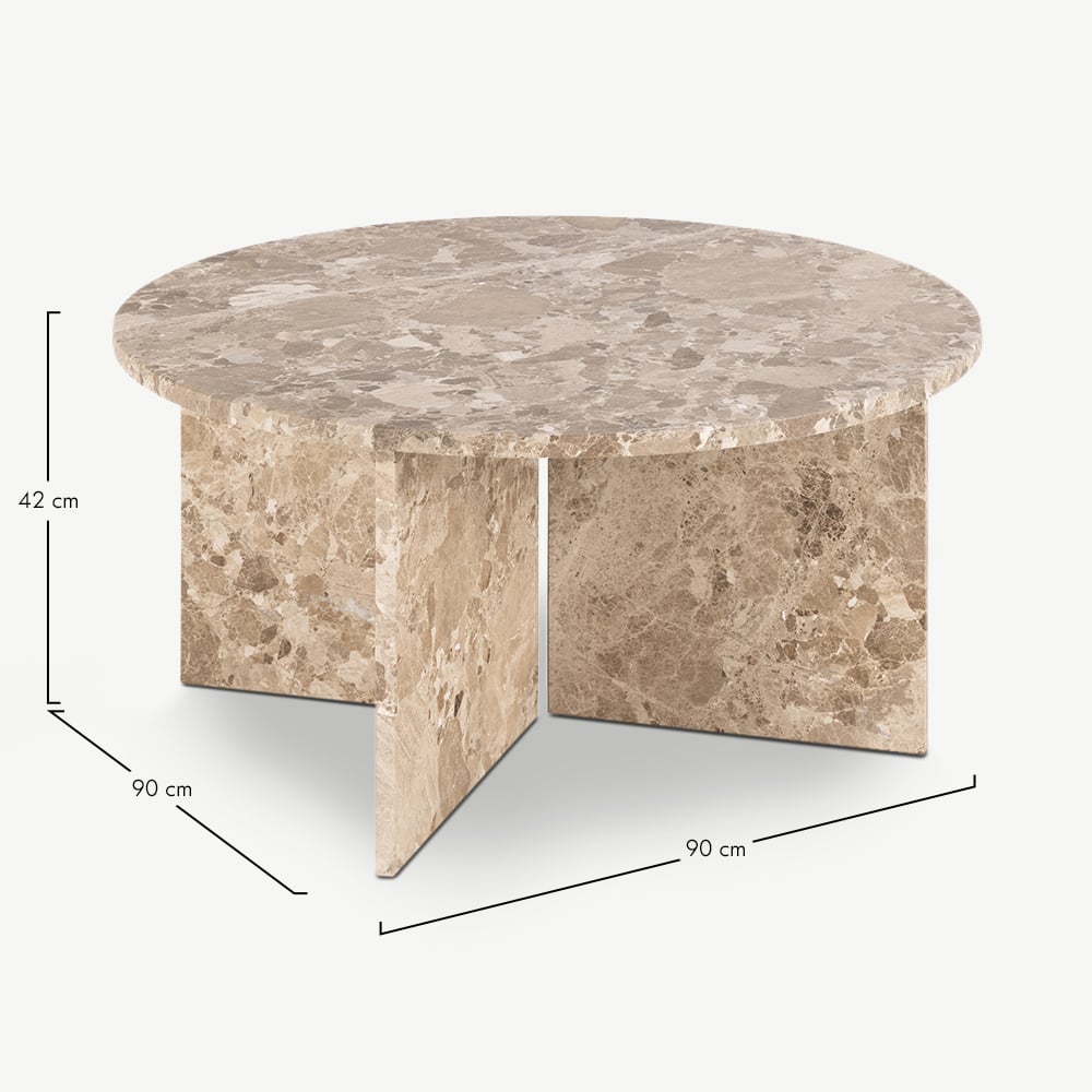 Made from authentic beige marble, the Efrain Coffee Table brings a calming and refined touch to any space. Its soft, neutral tones complement light woods, plush fabrics, and minimal or earthy interiors. Ideal for Scandinavian, contemporary, or coastal settings, it pairs beautifully with a boucle armchair, linen sofa, or natural fibre rug to create a cohesive and tranquil look.
