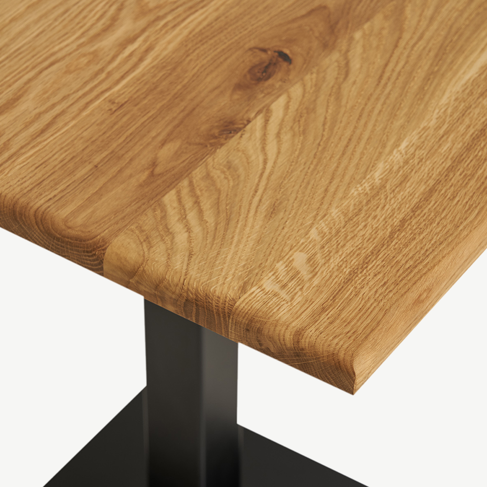 The Elza Square Bistro Table blends timeless elegance with functionality, featuring a solid natural oak tabletop and a sturdy black metal leg with a square base. Designed to seat up to two people, this table is perfect for small kitchens, cafes, bars, and restaurants.