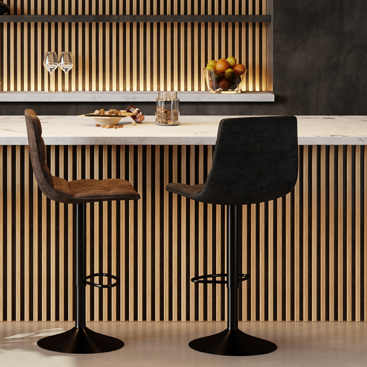 Featuring square-stitched upholstery, sleek bases and integrated footrests, these stools offer a clean, modern look. They’re ideal for creating an elevated and cohesive seating area that feels both stylish and welcoming.