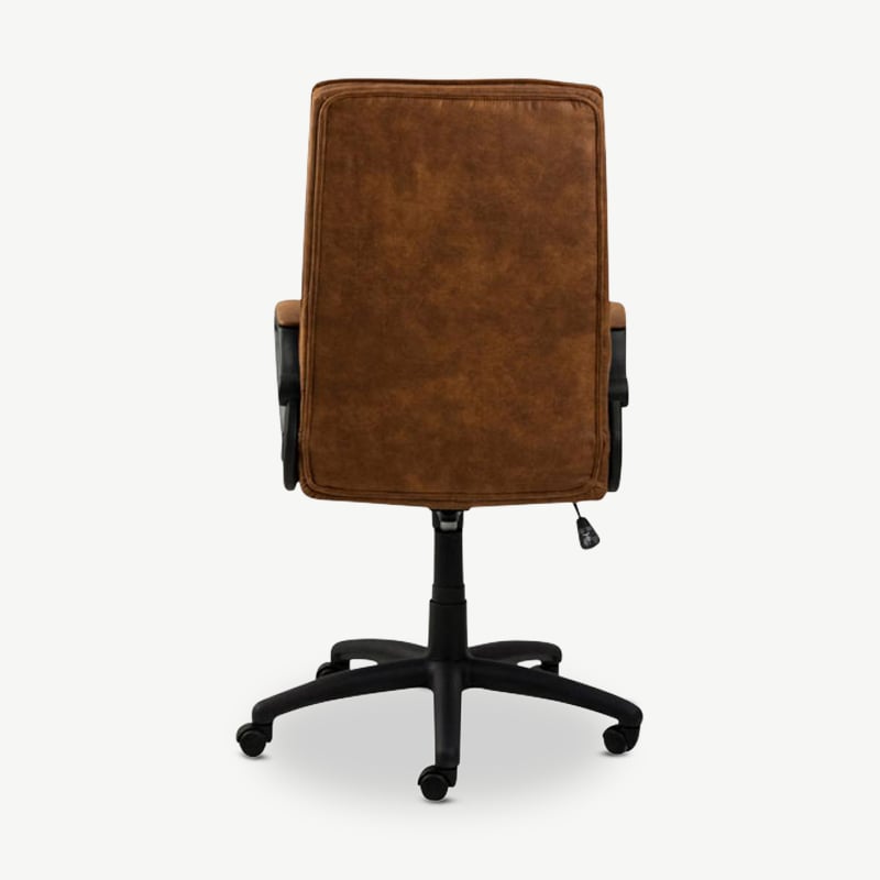 Upholstered in vintage cognac-coloured microfiber, the Ethan chair captures the charm of aged leather while remaining easy to care for. The warm tone complements rustic wood, black metal, or neutral-toned office furniture, fitting beautifully into industrial, retro or classic home office styles. A characterful piece that elevates any desk space.