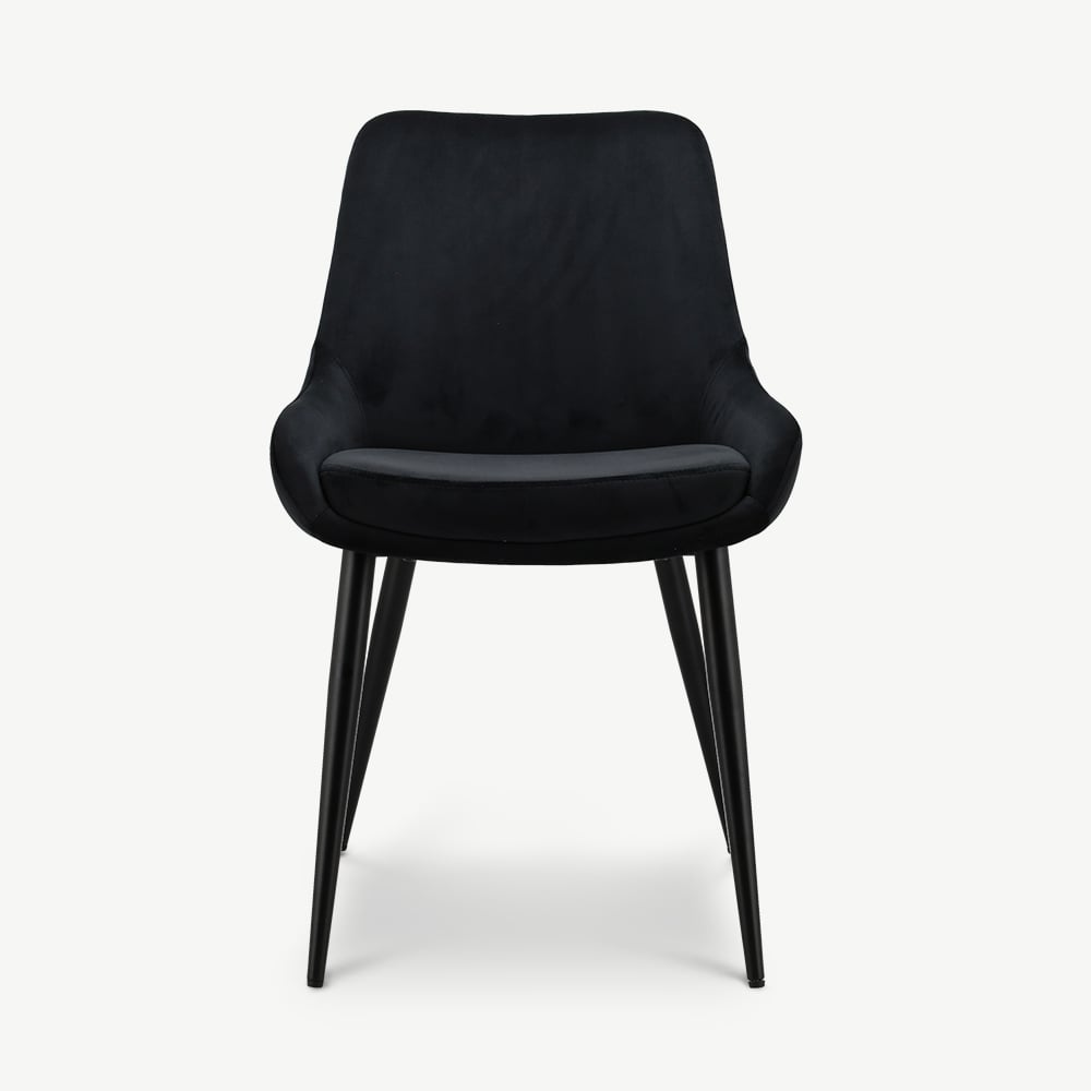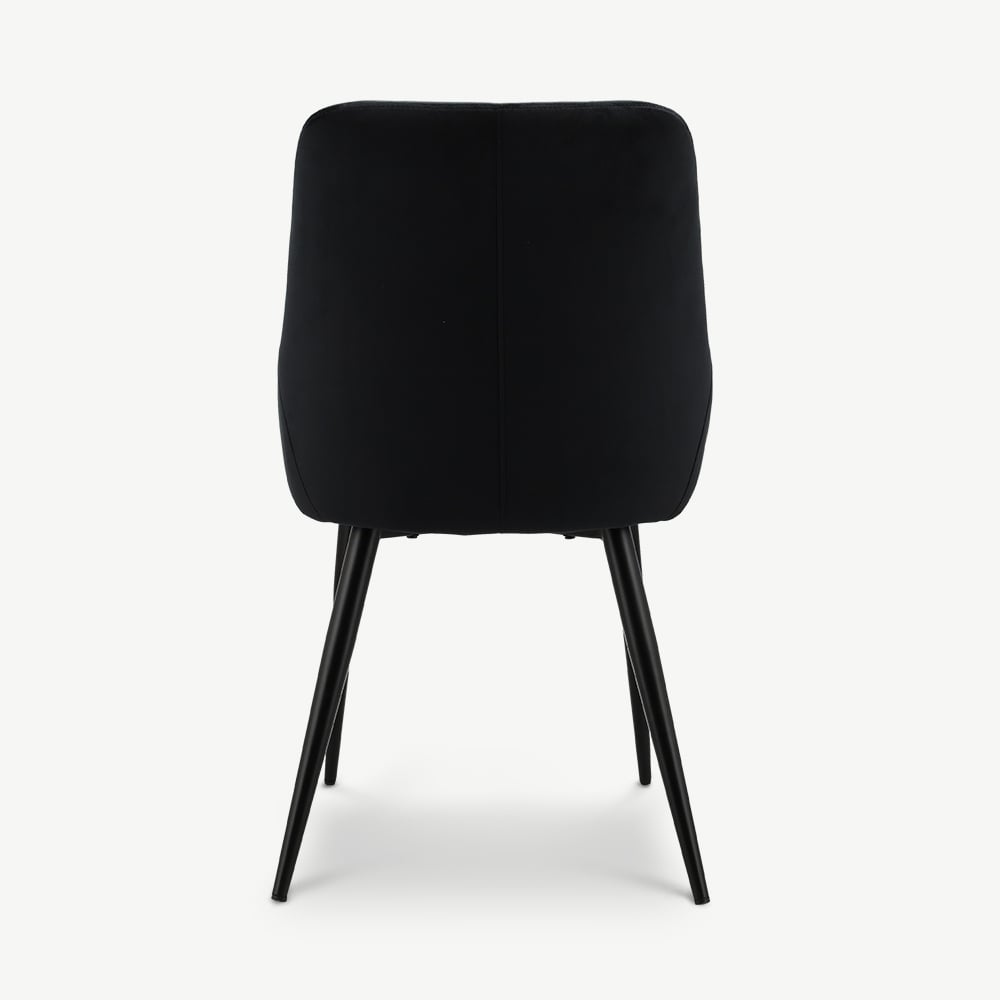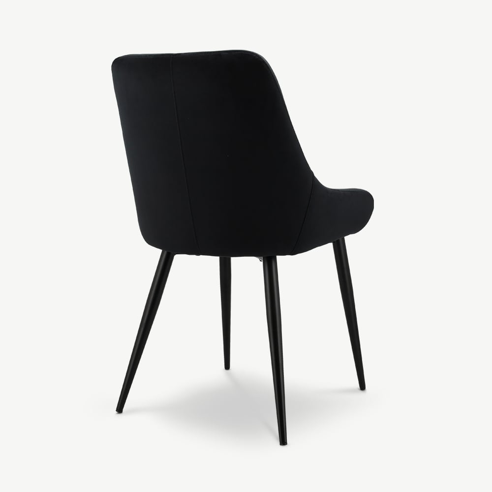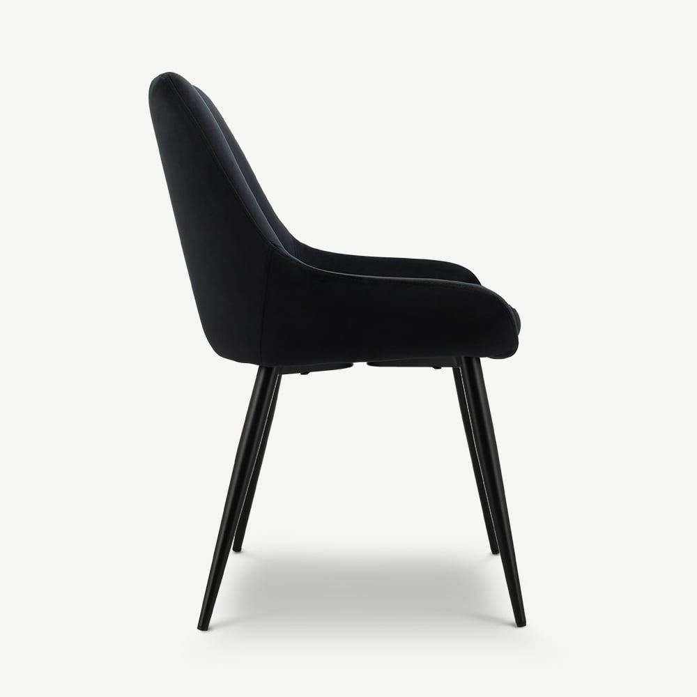 Fleur Black Velvet Padded Dining Chair with Black Coated Metal Legs
