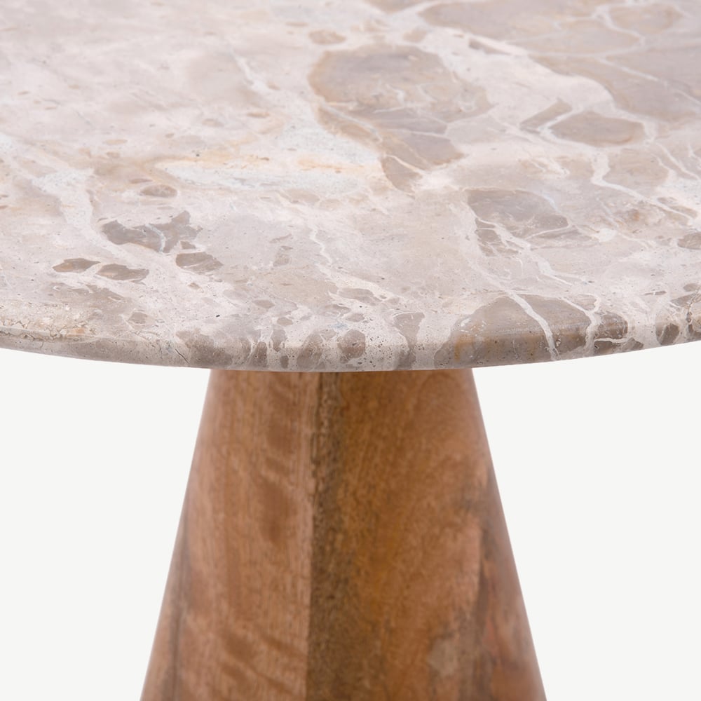 Force Round Side table, Taupe Marble & Wood, Small