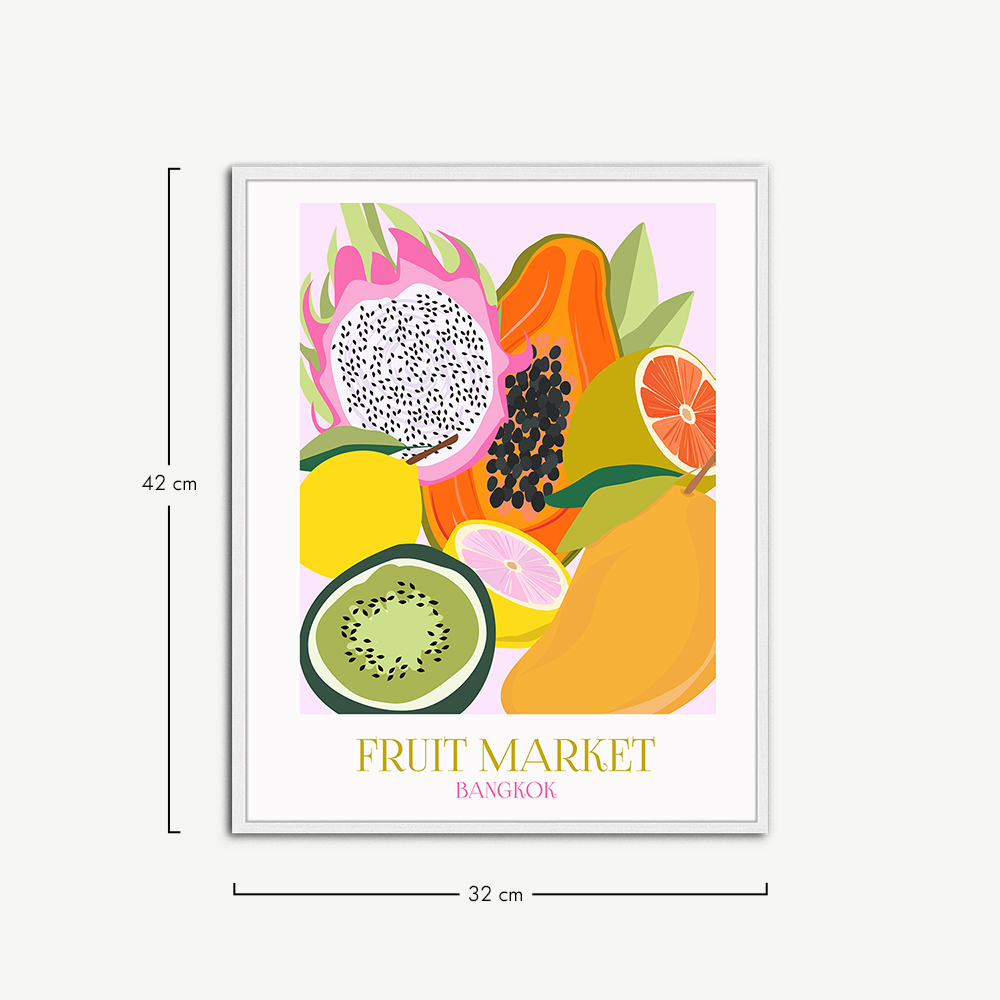 The Fruit Market Bangkok Wall Art is a stunning addition to any space. This wall art for the living room comes to life in a stylish print within a white beechwood thin frame, giving it a refined and elegant look.