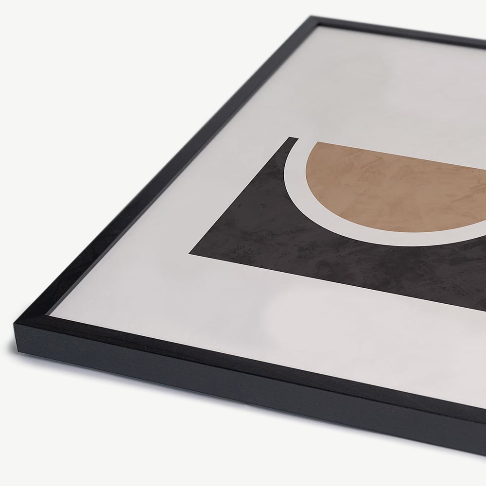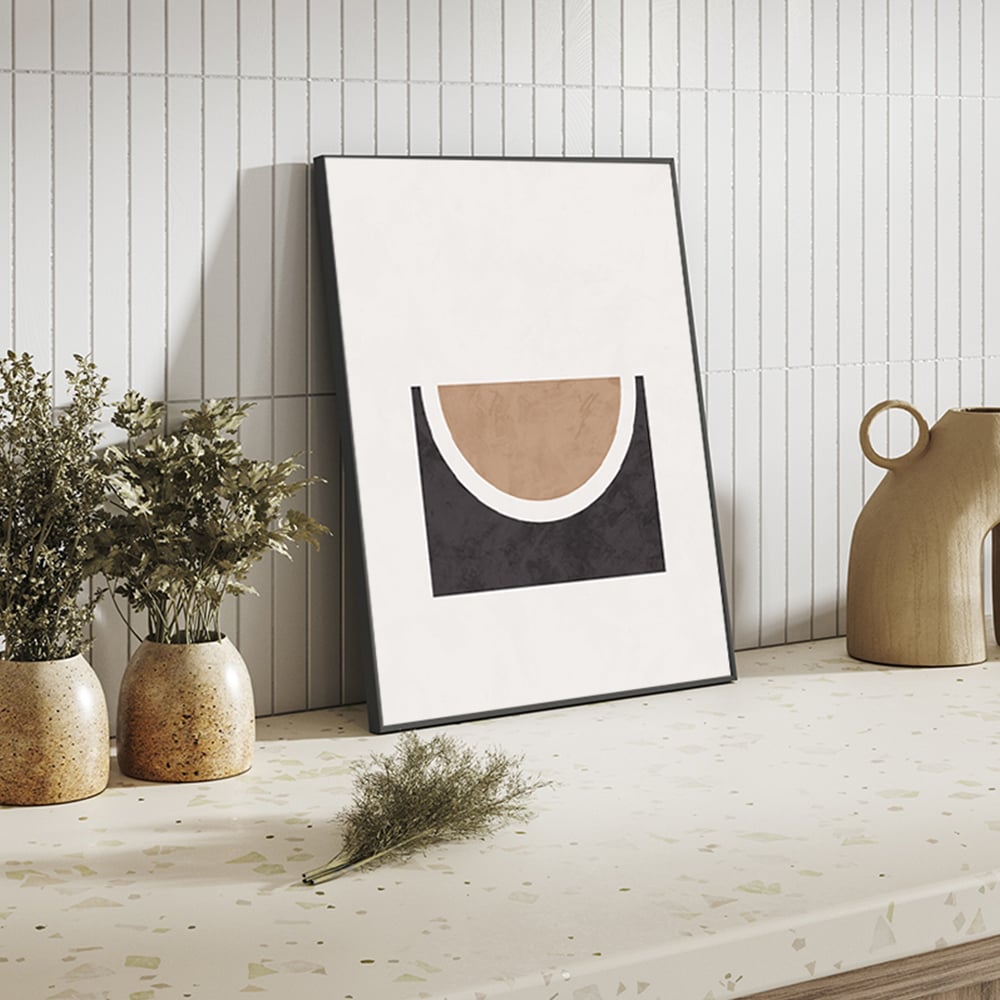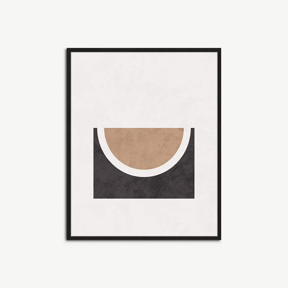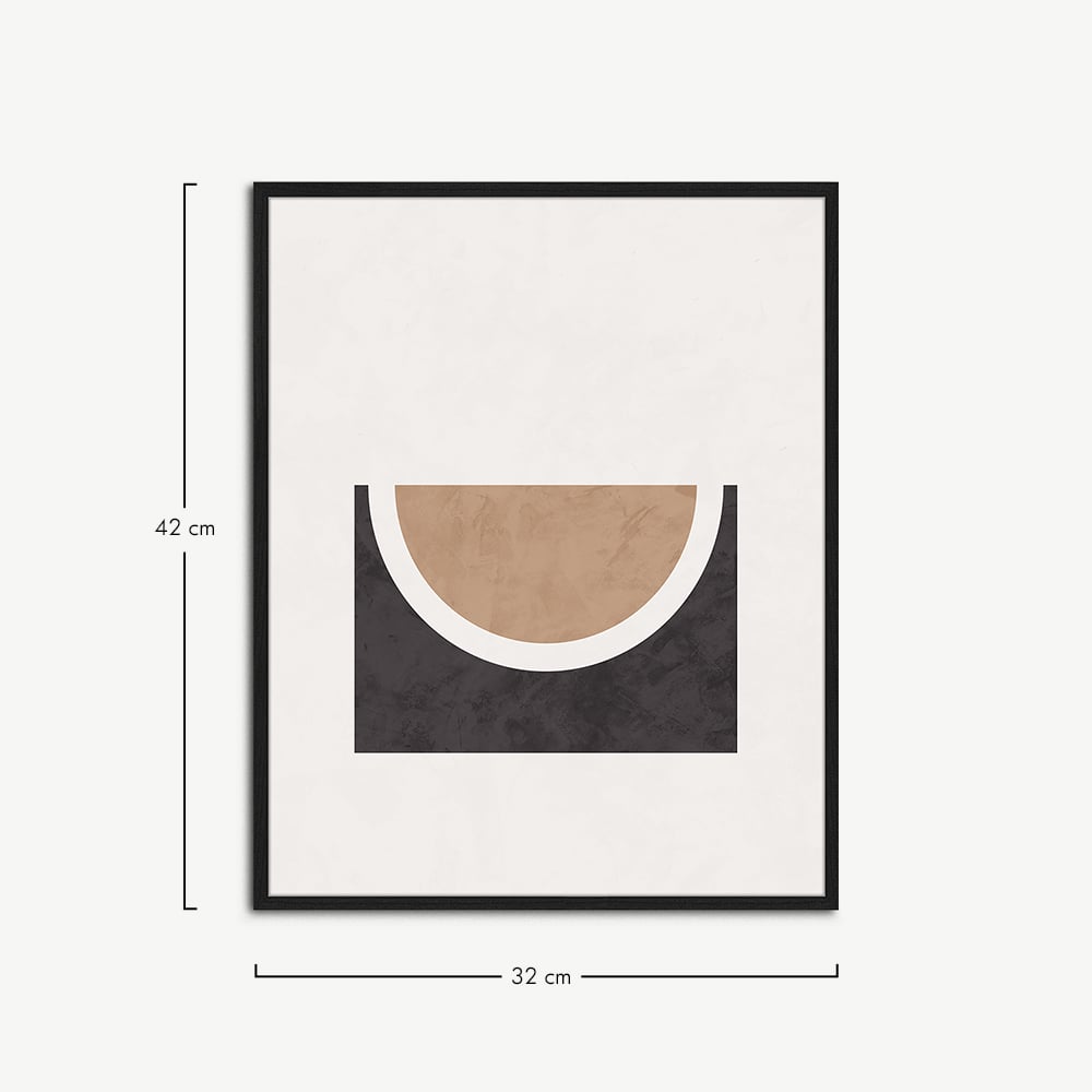 The Half Circle Abstract Wall Art, framed, is a stunning addition to any space. This elegant wall art print is beautifully showcased in a black beechwood thin frame, giving it a refined and modern look.