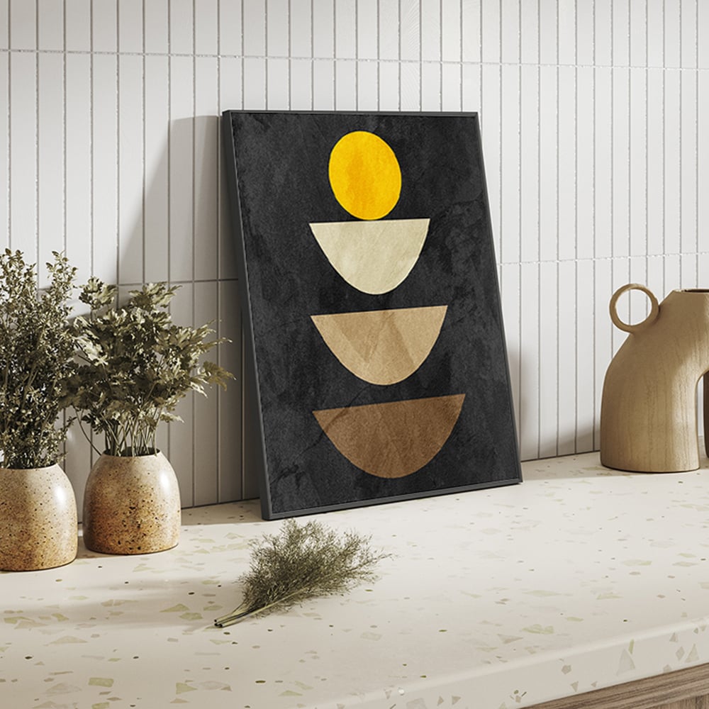 The Half Moon Wall Art features a black beechwood frame, known for its durability and natural beauty. The wooden frame enhances the artwork by adding depth and dimension, making it a true focal point in your interior design.