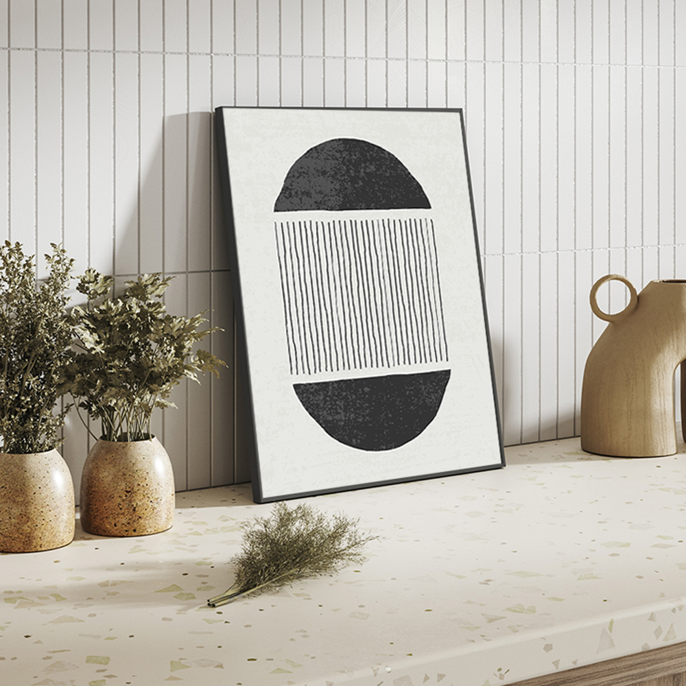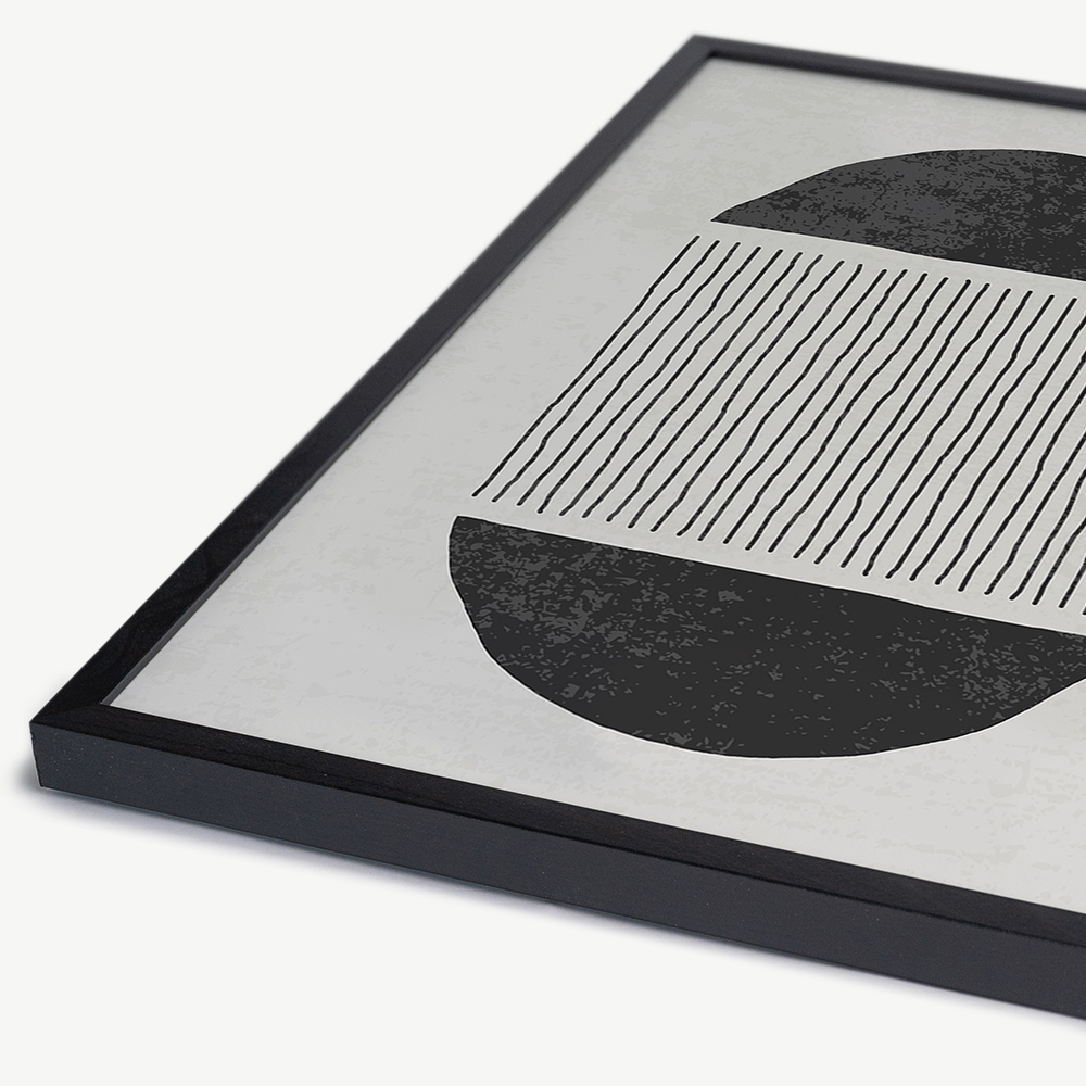 The In Between Abstract Wall Art comes in a black frame, known for its durability and natural beauty. The wooden frame displays the wall art print in a way that adds depth and dimension, making it a true focal point in your interior.