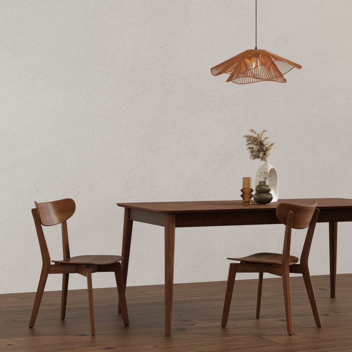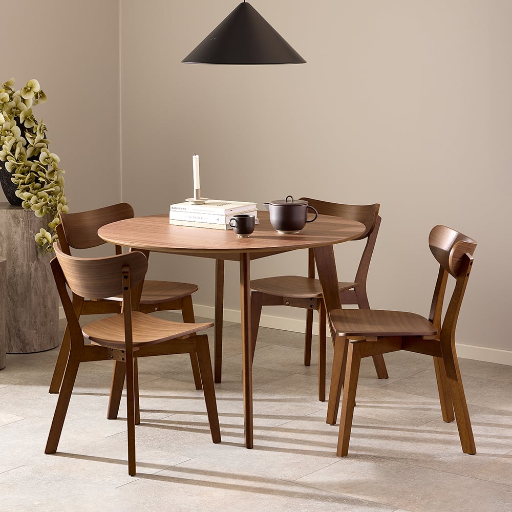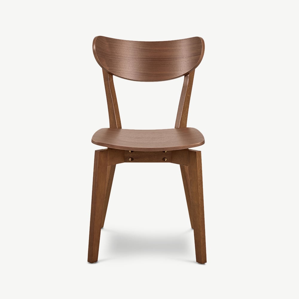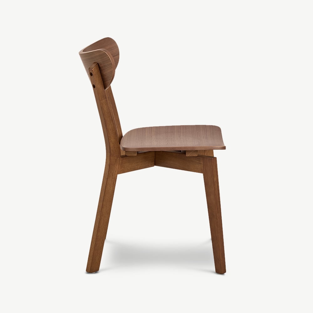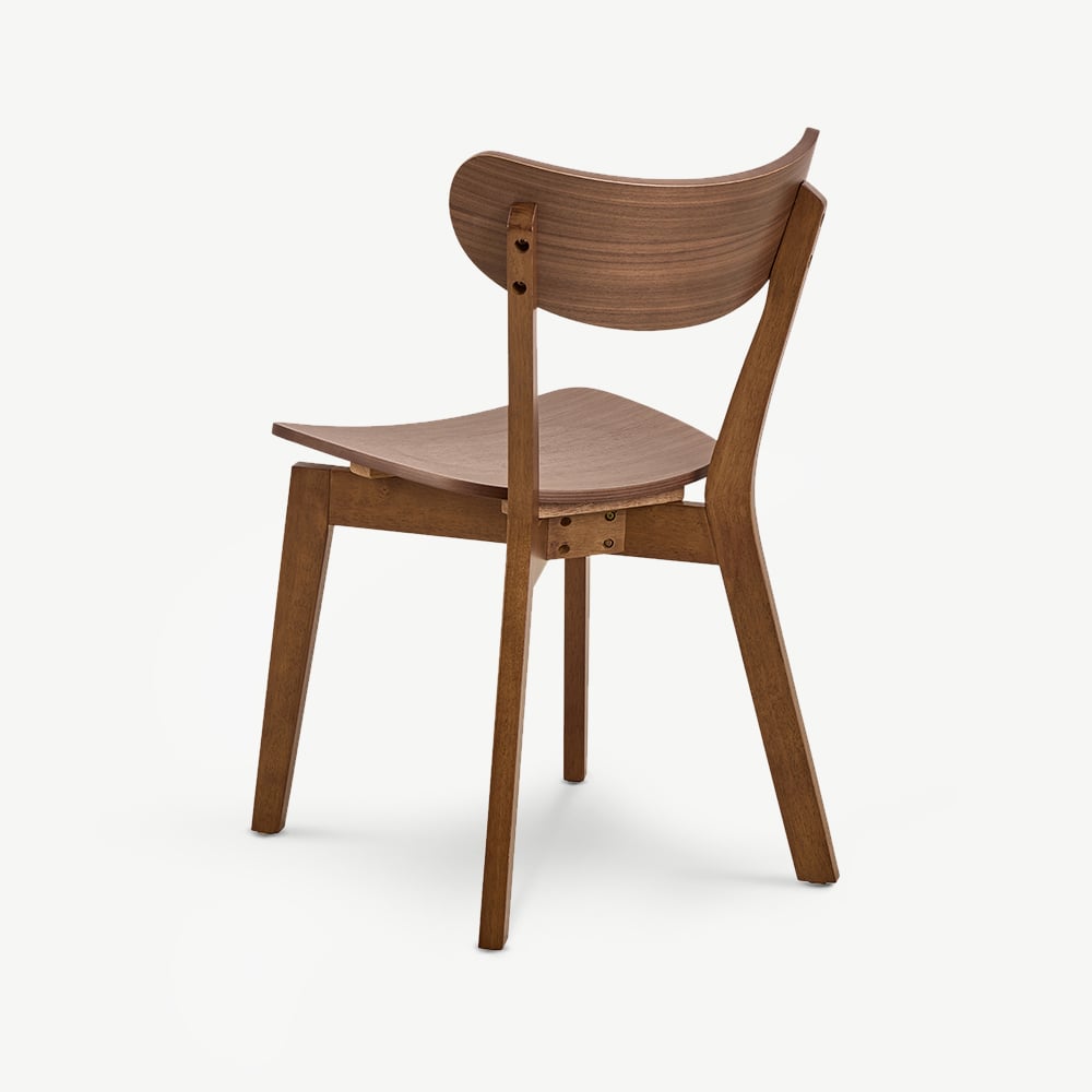 The India chair in walnut finish oak veneer brings an elegant and grounded feel to any space. Whether styled around a dark wood table or mixed with lighter elements, it offers a timeless look for modern homes.