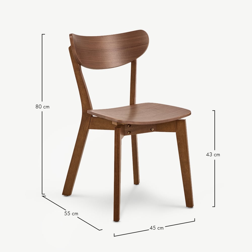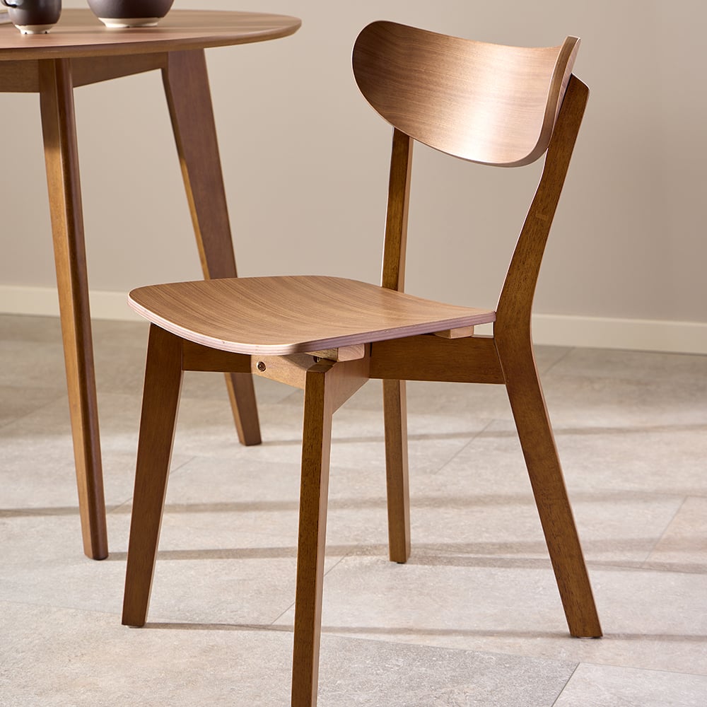 The India Dining Chair in Walnut Finish Oak Veneer combines rich, dark tones with timeless design. With its walnut-coloured oak veneer seat, backrest and frame, this chair adds a sophisticated, retro-inspired touch to modern dining areas while being easy to clean and maintain.