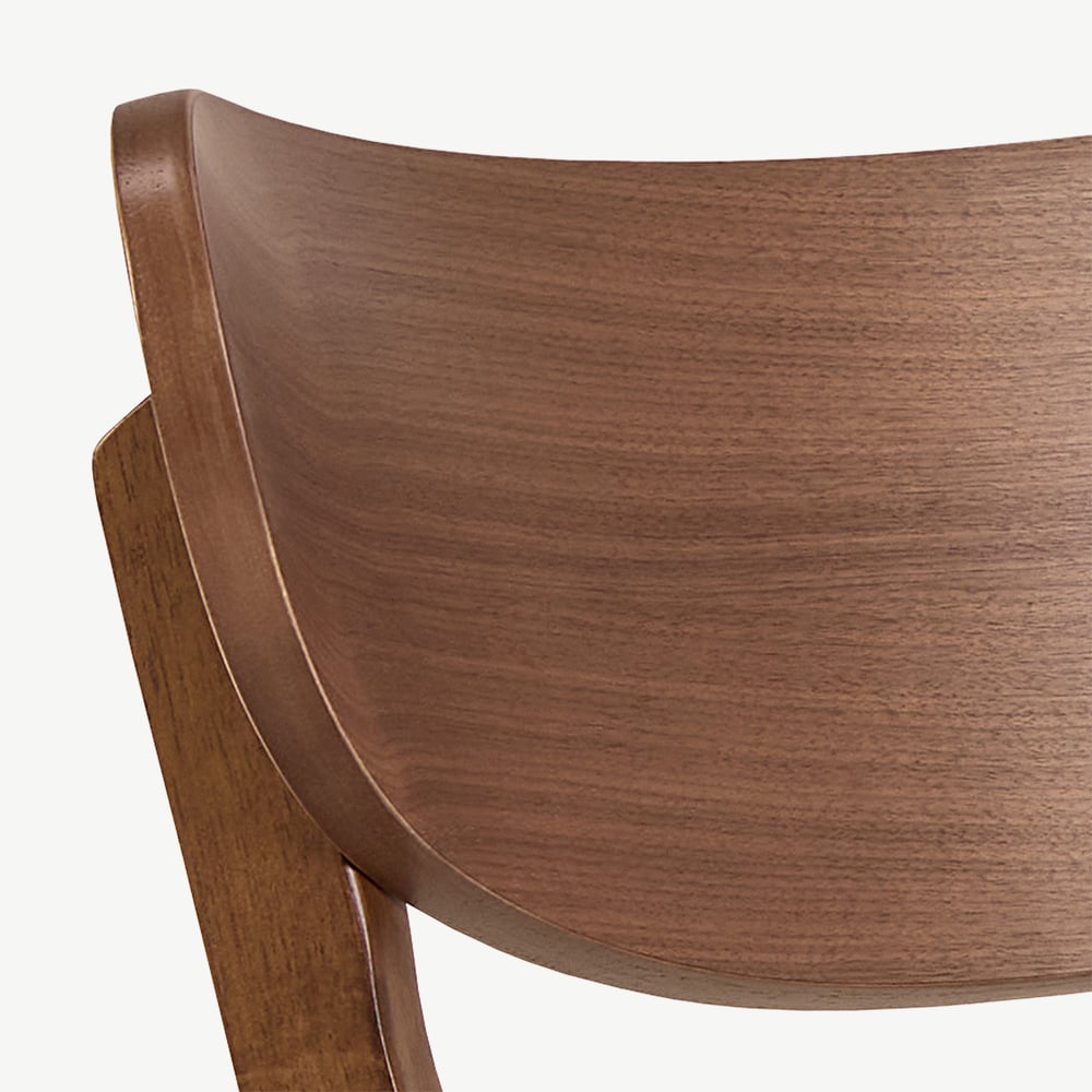 The curved backrest ensures supportive seating, while the wood veneer surface is easy to wipe clean. The solid frame provides durability, making them a practical choice for both daily dining and special occasions.