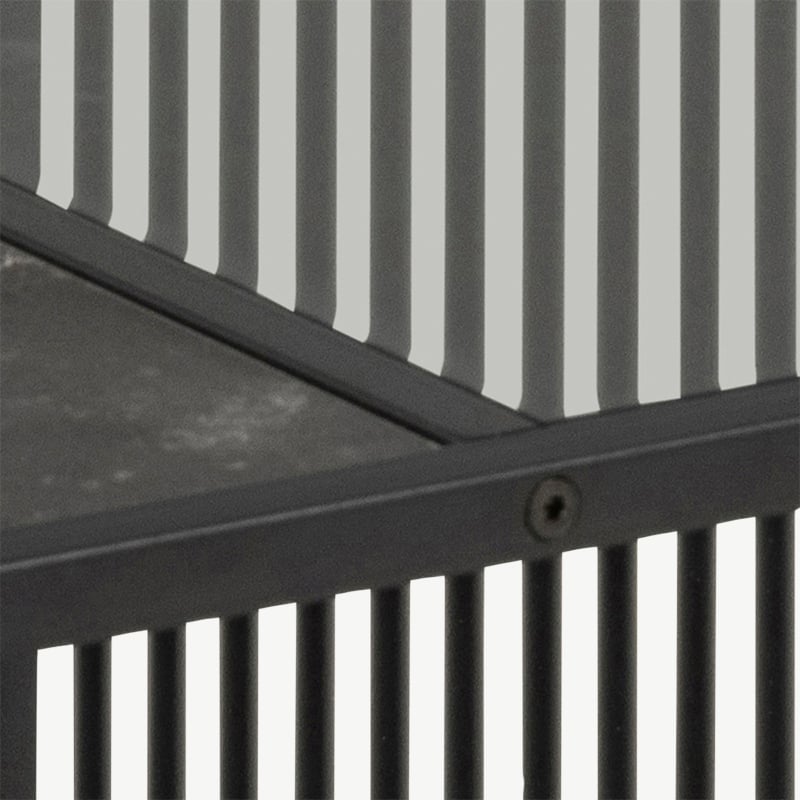The Joy table’s clean silhouette is enhanced by the vertical slatted sides, adding texture and architectural interest without overwhelming the space. The black finish keeps the look sleek and cohesive, making this table a standout piece in modern or minimalist interiors.