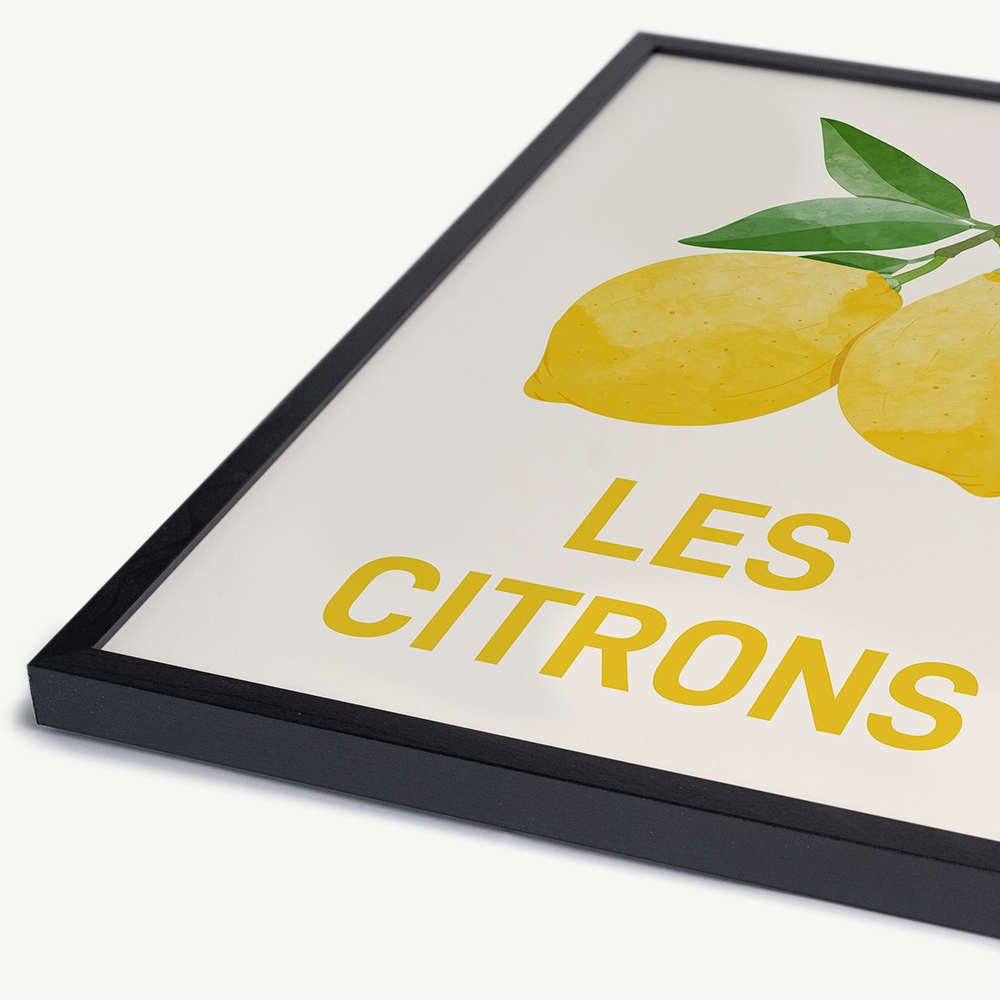 The Les Citrons Wall Art features a black beechwood frame, known for its durability and natural beauty. The wooden frame enhances the artwork by adding depth and dimension, making it a true focal point in your interior.