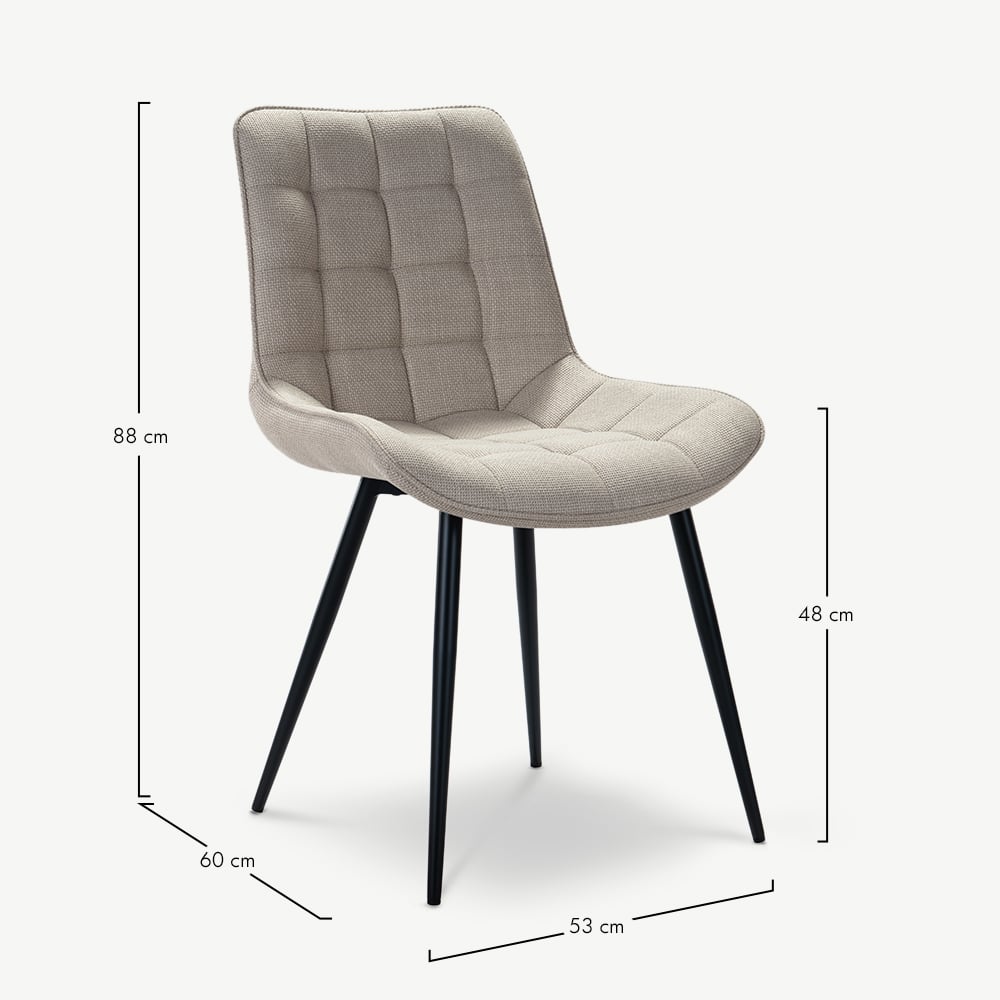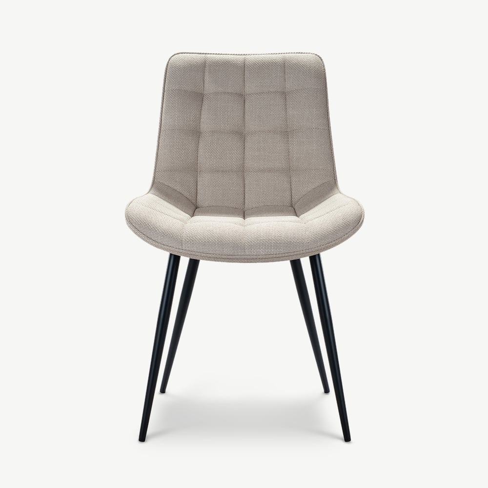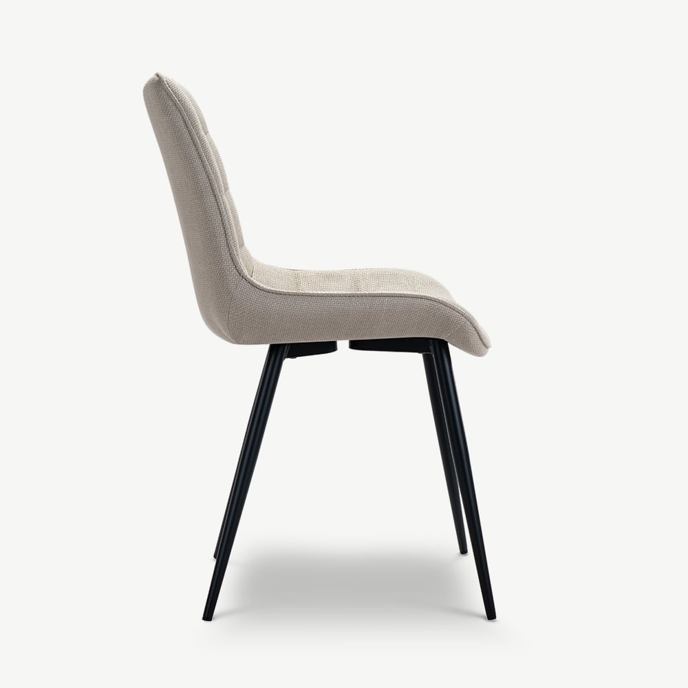 Lisboa Beige Fabric Quilted Dining Chair with Black Coated Metal Legs