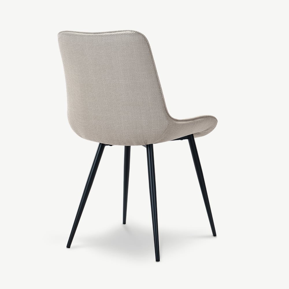 The Lisboa Quilted Dining Chair in Beige Fabric offers the perfect blend of modern comfort and elegant design. Its textured upholstery, supportive curves and slim black metal legs make it an inviting and practical choice for everyday dining.