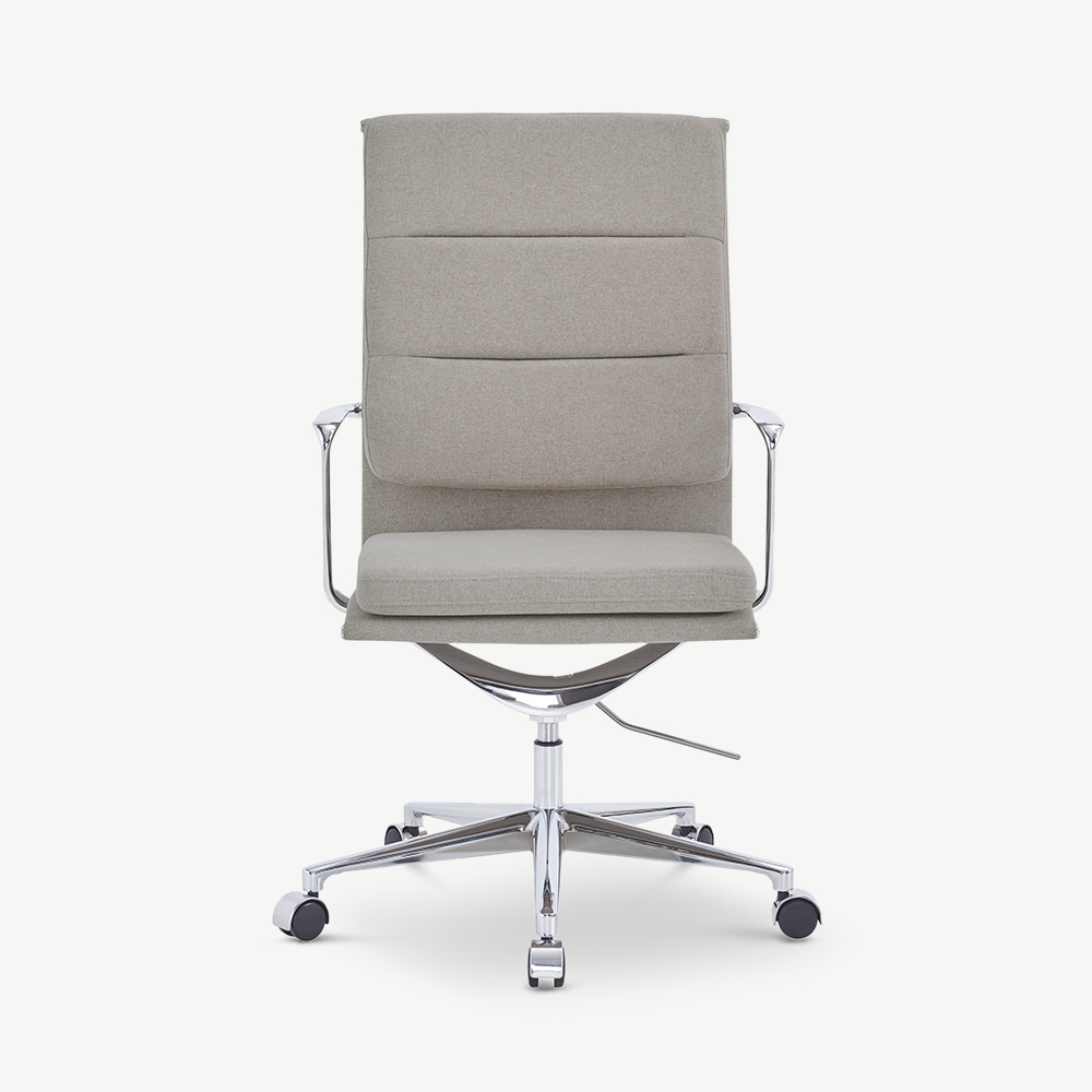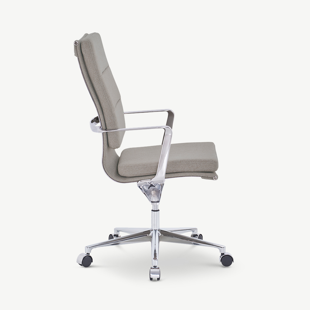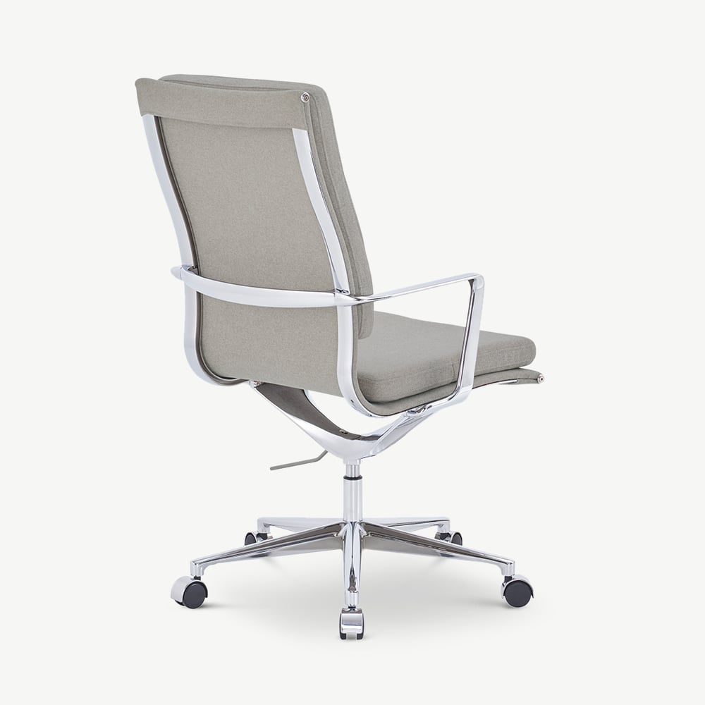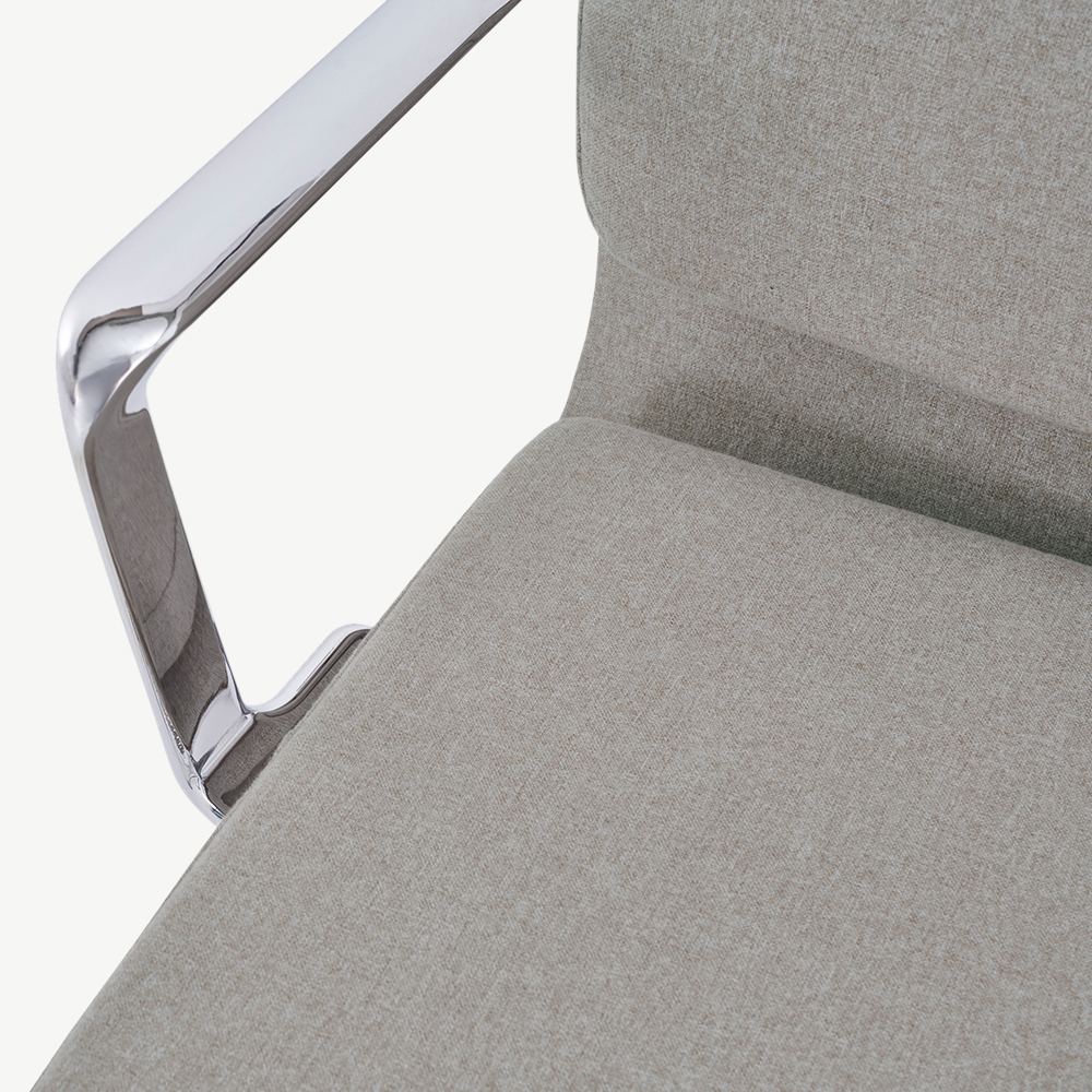 Soft beige fabric meets the refined shine of chrome in a highback office chair that combines comfort and sophistication. The Maci Office Chair elevates both home and professional workspaces with its ergonomic design, sculpted armrests, and supportive cushioning. Offering style and practicality in equal measure, it’s a chair designed for those who value both form and function.