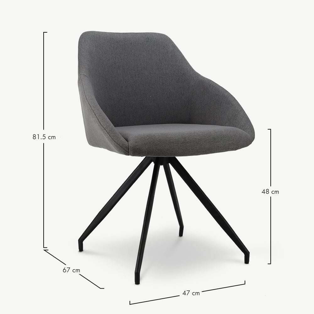 Marlow Swivel Dining Chair, Grey Fabric