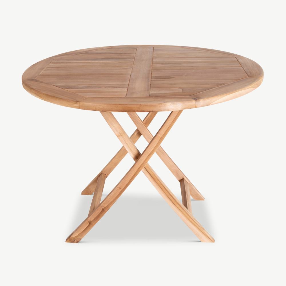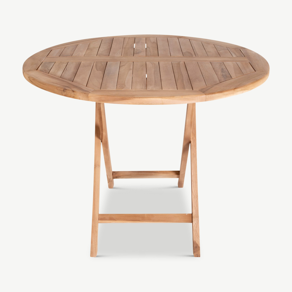 Transform your outdoor space with the Oranda round garden table in natural teak.