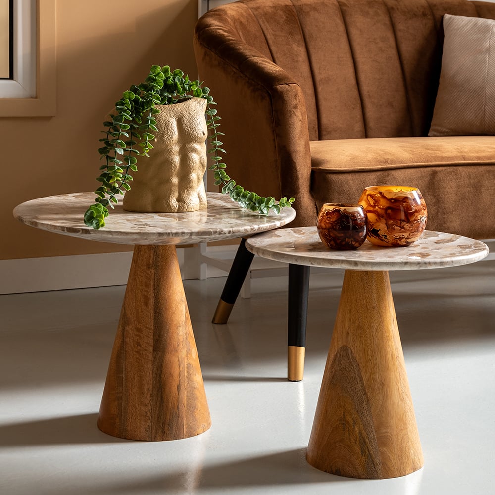 The Force Table masterfully combines the opulence of brown marble with the warmth and durability of mango wood, creating a side table that's not only visually stunning but also rich in natural textures. This fusion of materials brings an element of sophisticated natural beauty to any space, making it a perfect tastemaker for those who appreciate the finer details in home decor.