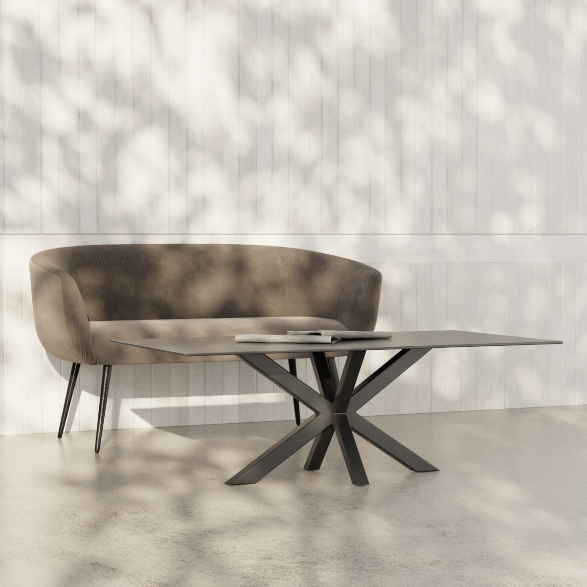 The Talon Coffee Table makes a striking statement with its black rough ceramic tabletop and sculptural black metal cross base. Blending functionality with refined industrial aesthetics, it's a centrepiece that elevates any contemporary living space.