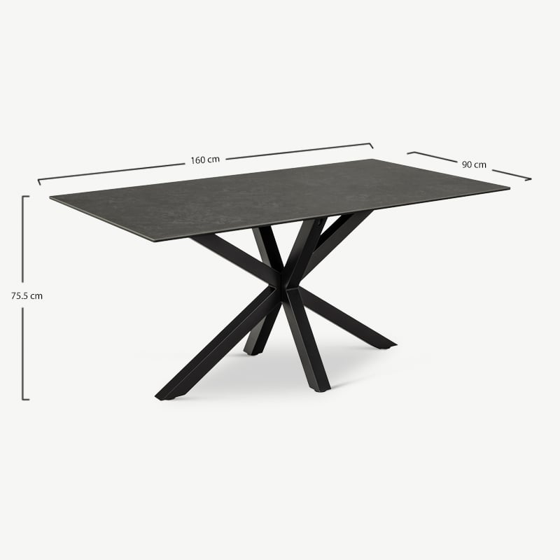 Talon Dining Table, Black Ceramic & Metal - 160 cm