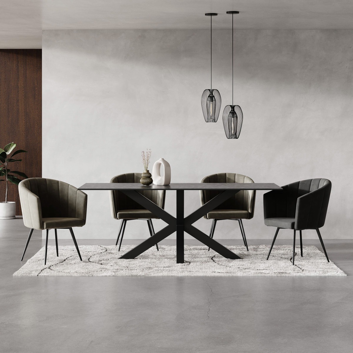 The Talon Dining Table combines modern design with exceptional resilience. Featuring a striking black ceramic tabletop and a sculptural metal cross base in matching black, this 160 cm table comfortably seats up to 8 people. It's the perfect centrepiece for contemporary dining spaces where function and style go hand in hand.