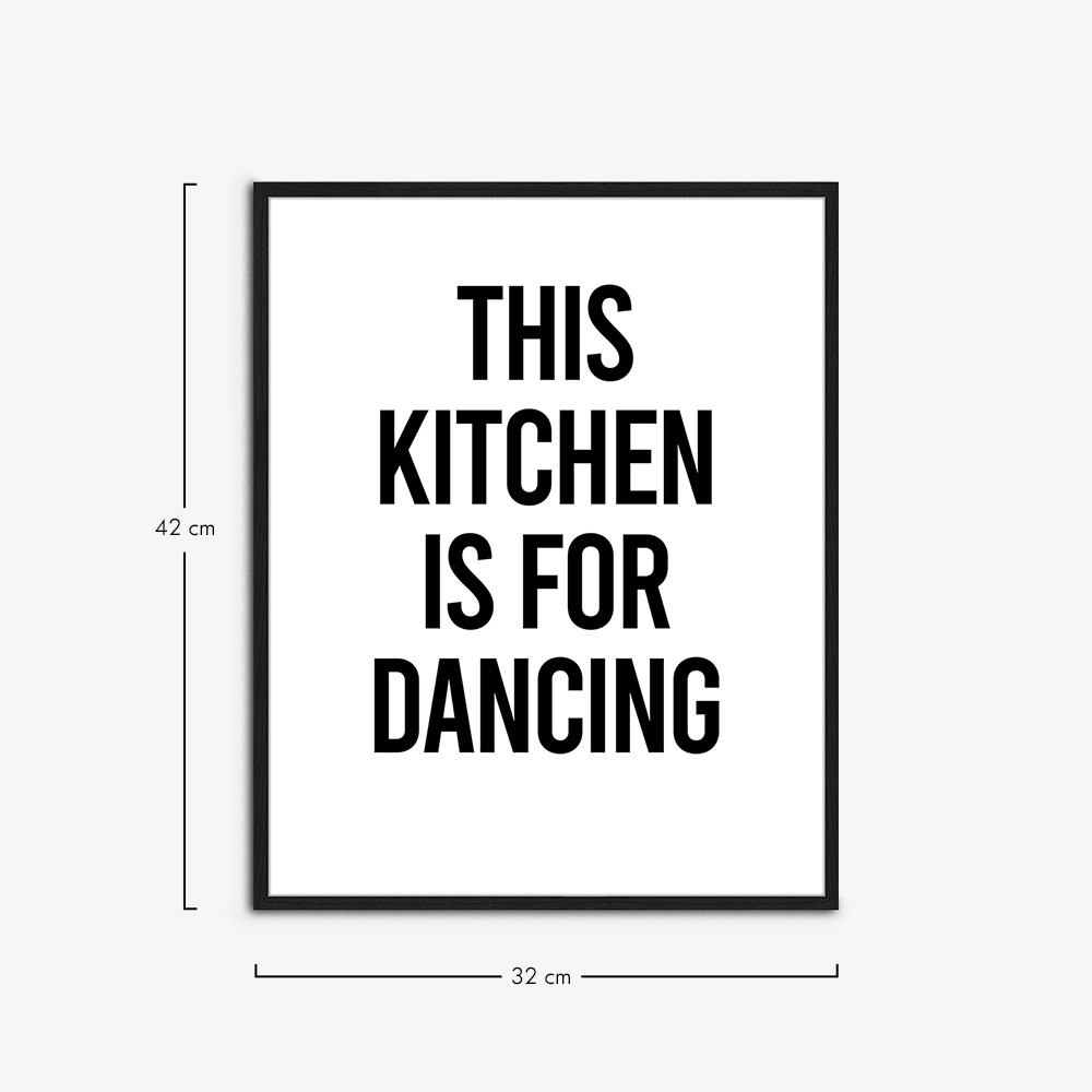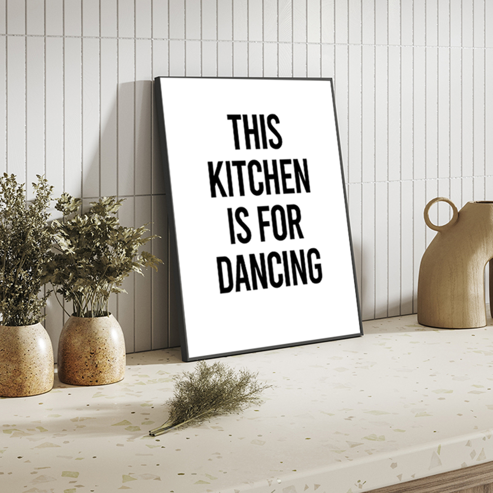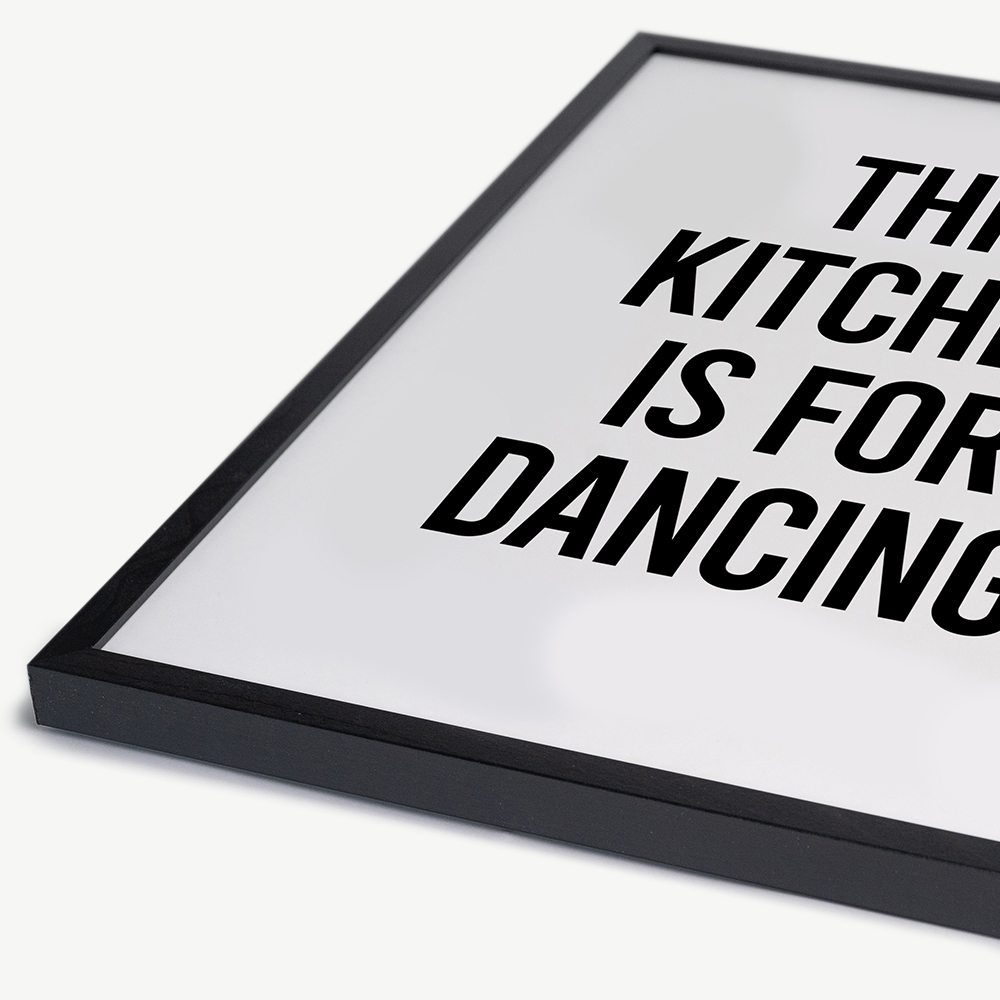 The Kitchen is For Dancing Wall Art is presented in a black beechwood frame, known for its durability and natural beauty. The wooden frame enhances the artwork by adding depth and dimension, making it a true focal point in your interior.