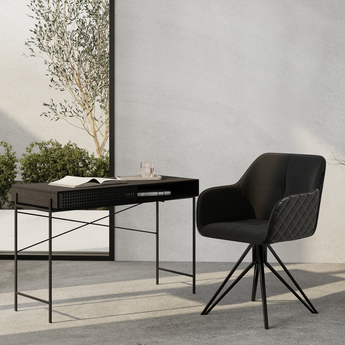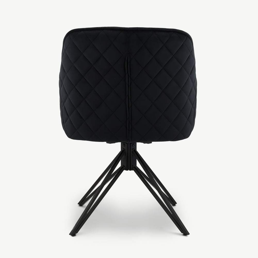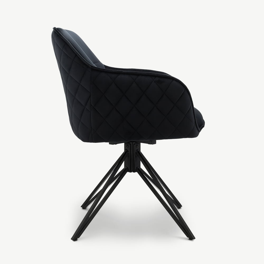 Bring modern sophistication to your dining or work area with the Venice Swivel Dining Armchair in black velvet. Featuring a bold quilted back and a sleek metal base, this armchair combines elegance and functionality in one standout design.