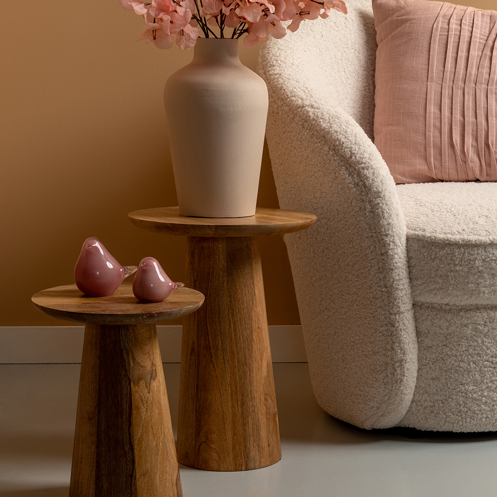 Crafted from the finest mango wood, the Vigor Side Table embodies a natural tastemaker's essence, effortlessly bringing a touch of the outdoors into your home. Its robust material and beautiful grain patterns make it a standout piece that complements a wide range of interior styles. Available in two different sizes, it offers versatility to fit your space perfectly, whether as a standalone feature or paired with other furniture.Organic Charm With A Wooden Side Table