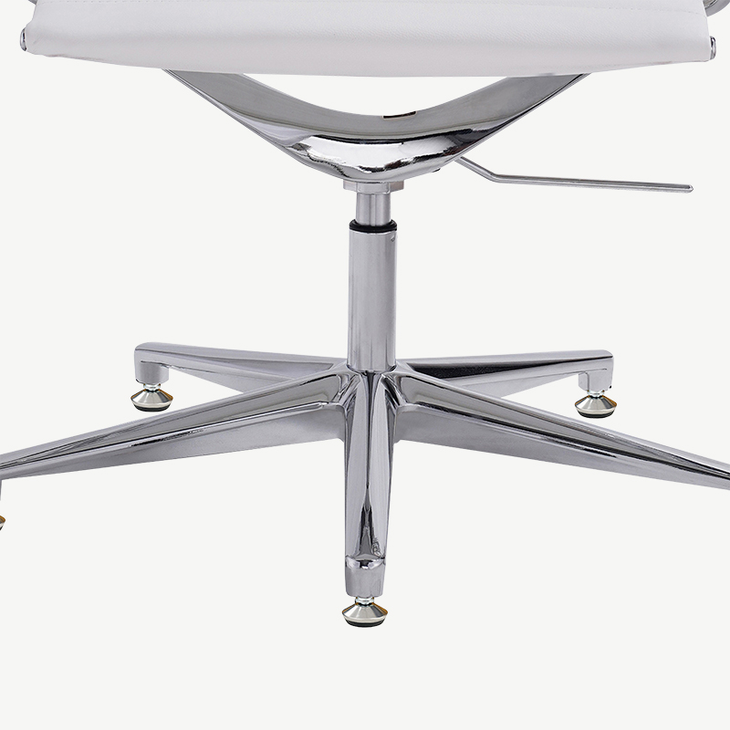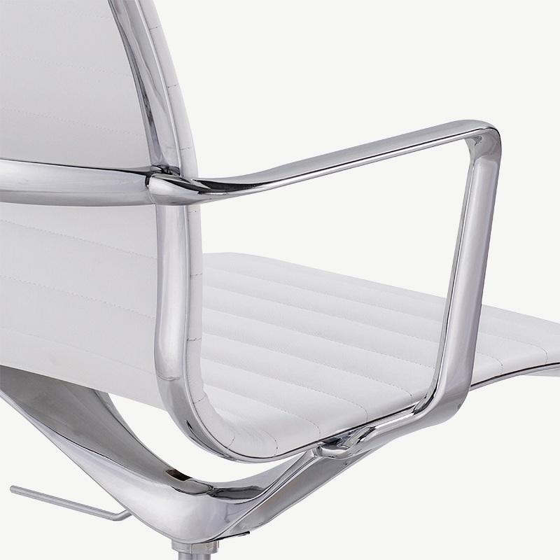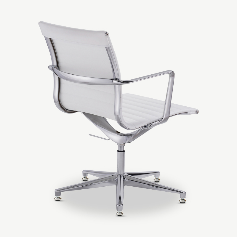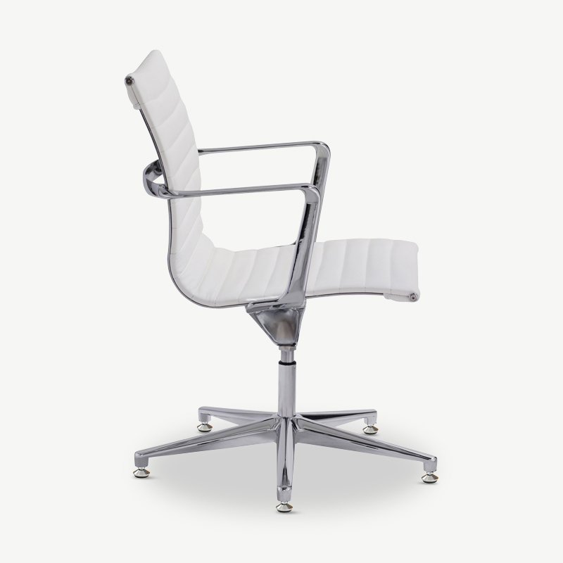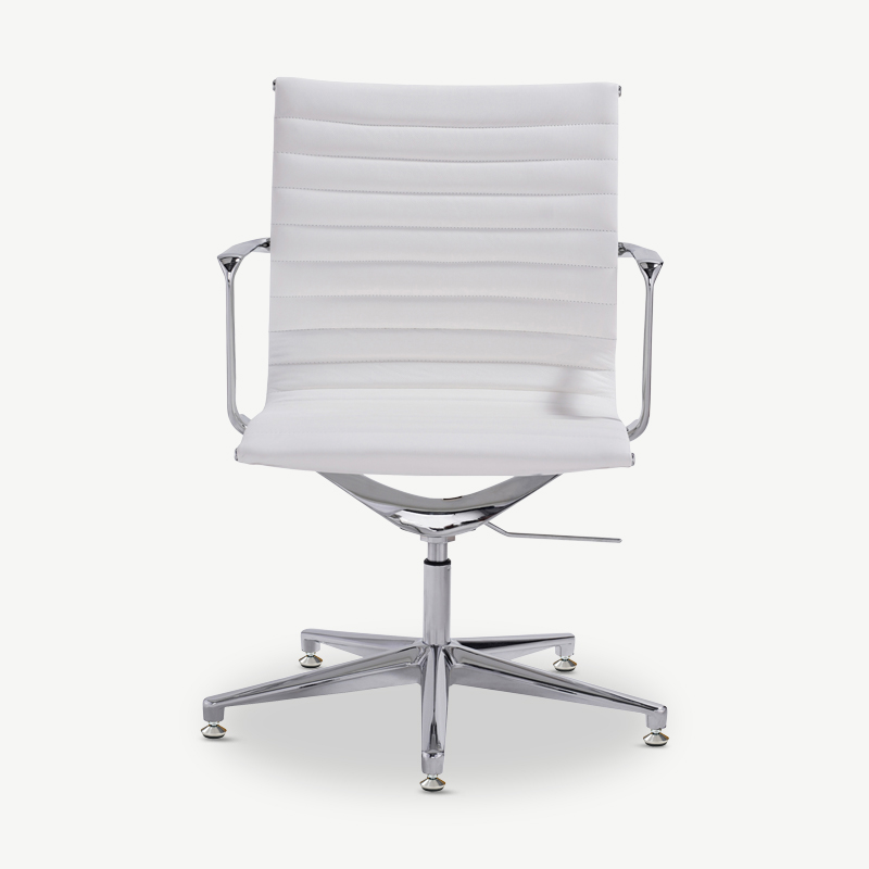 Mateo White Leather Ribbed Conference Chair with Lowback Design and Fixed Legs