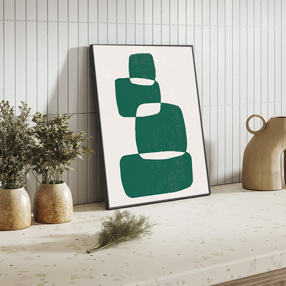 Affiche murale abstraite vert foncé, encadrée