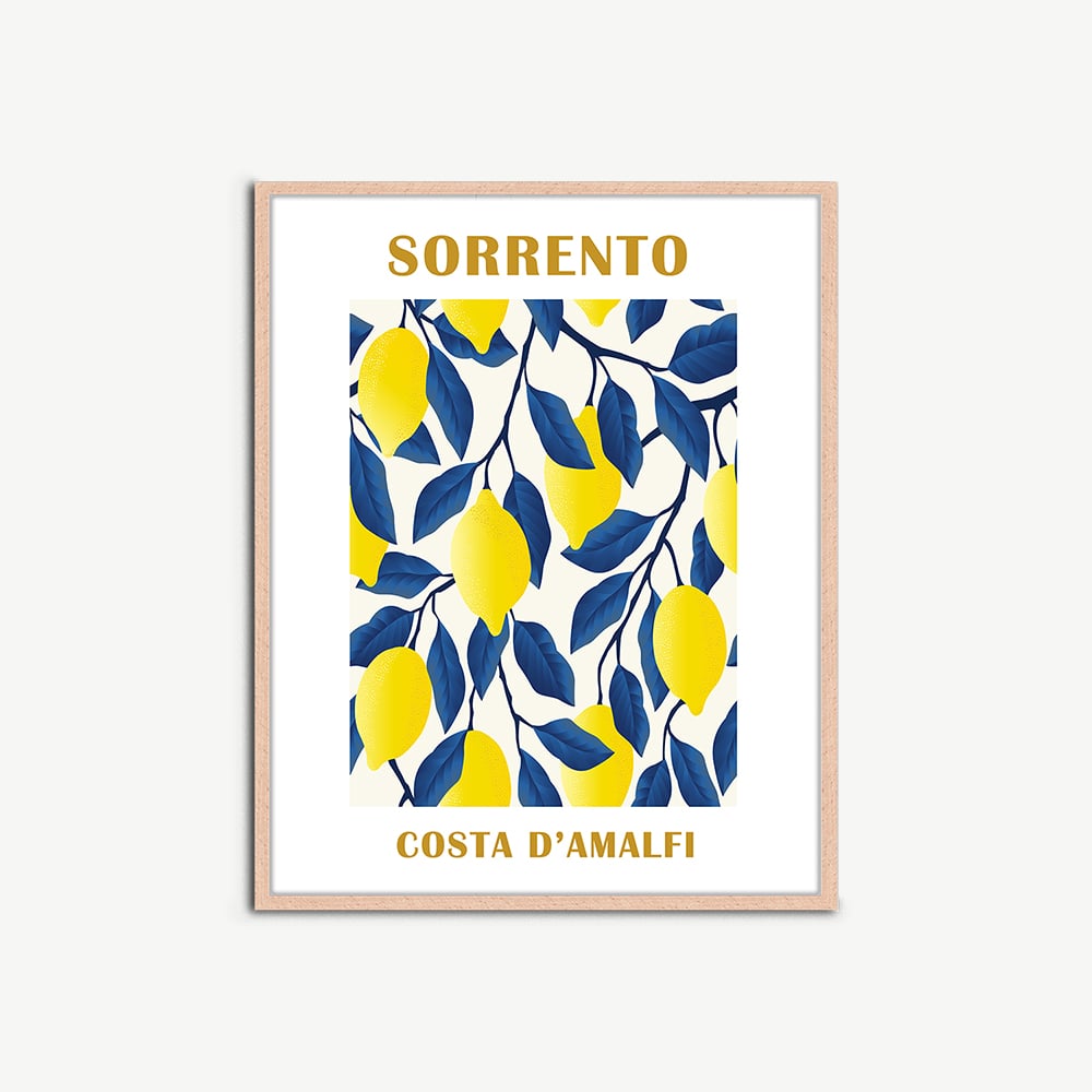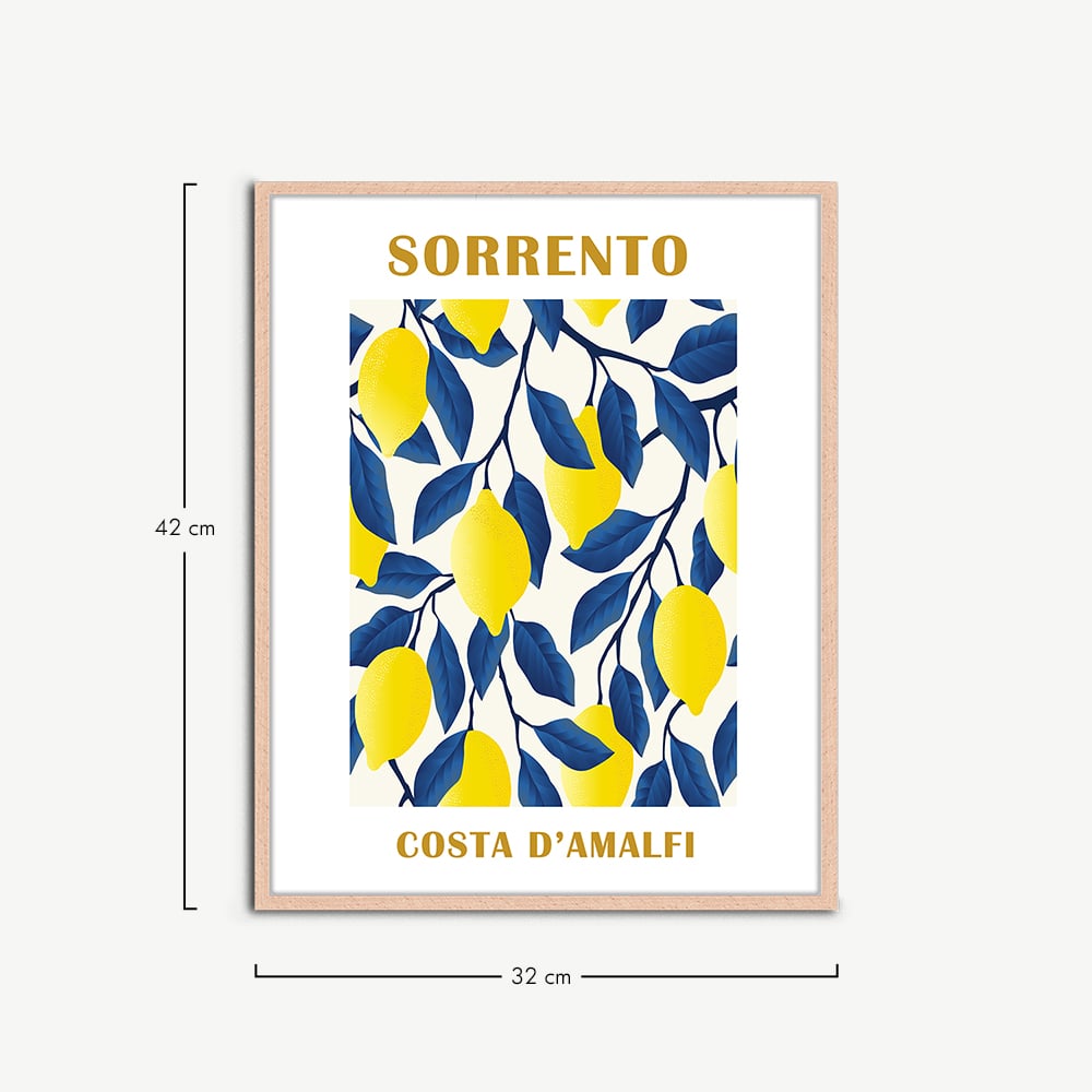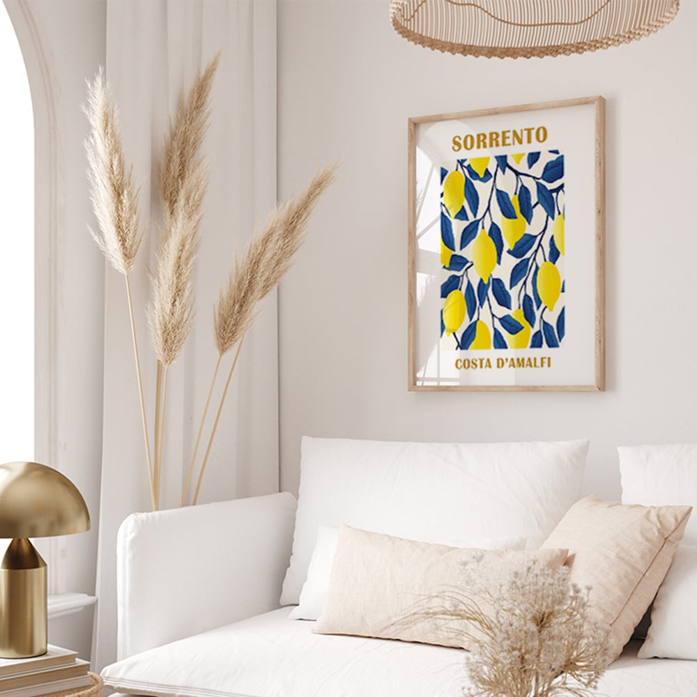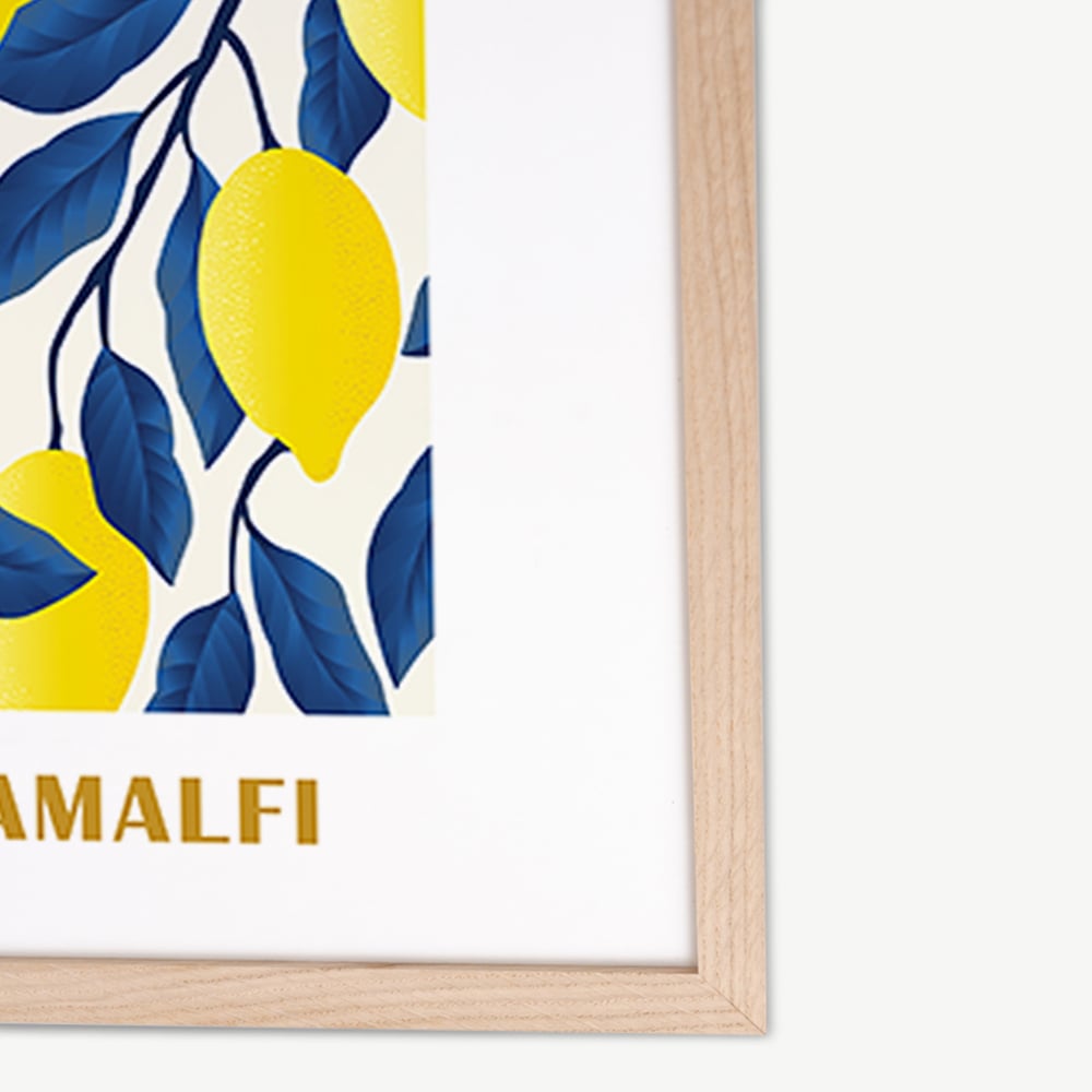 L'art mural Sorrento est présenté dans un cadre en bois naturel, apprécié pour sa durabilité et sa beauté organique. Le cadre en bois ajoute une profondeur visuelle à cette décoration murale, en faisant un point focal resplendissant dans votre intérieur.