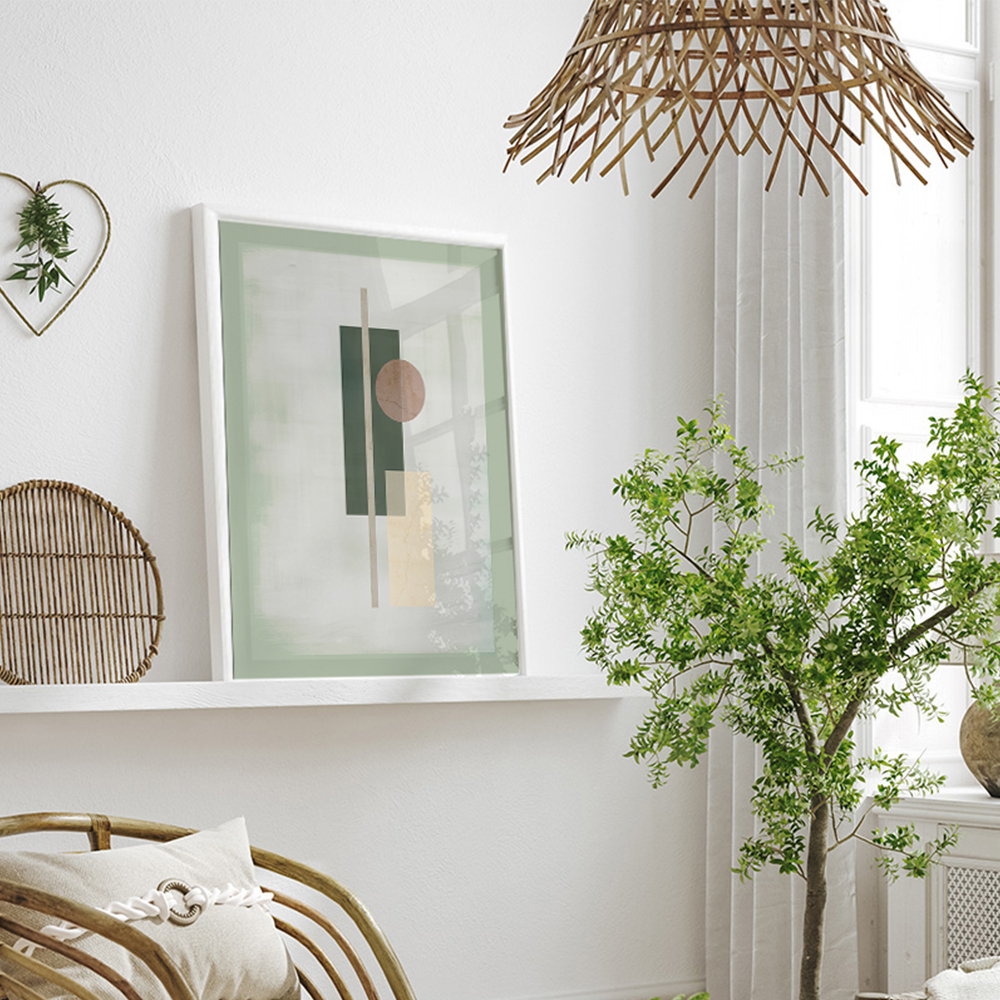 Affiche murale vert abstrait, encadrée
