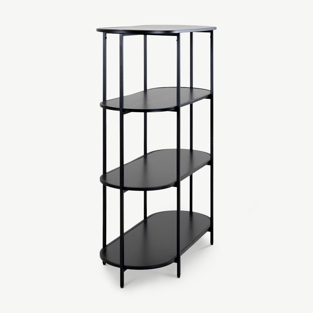 Dotée de quatre tablettes en bois spacieuses, cette étagère offre un espace généreux pour exposer vos objets décoratifs, livres ou autres accessoires. Sa structure ovale renforce son attrait visuel, faisant d’elle un élément central dans les salons, bureaux ou autres espaces.