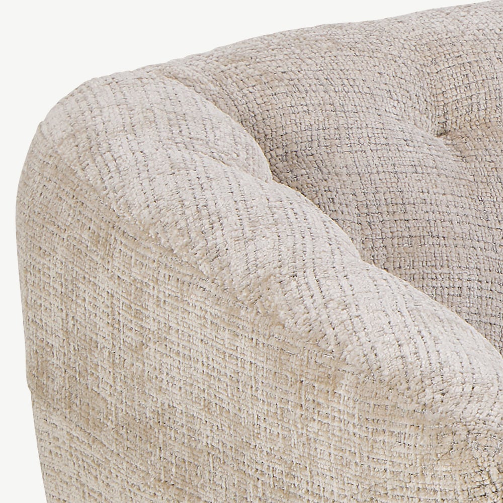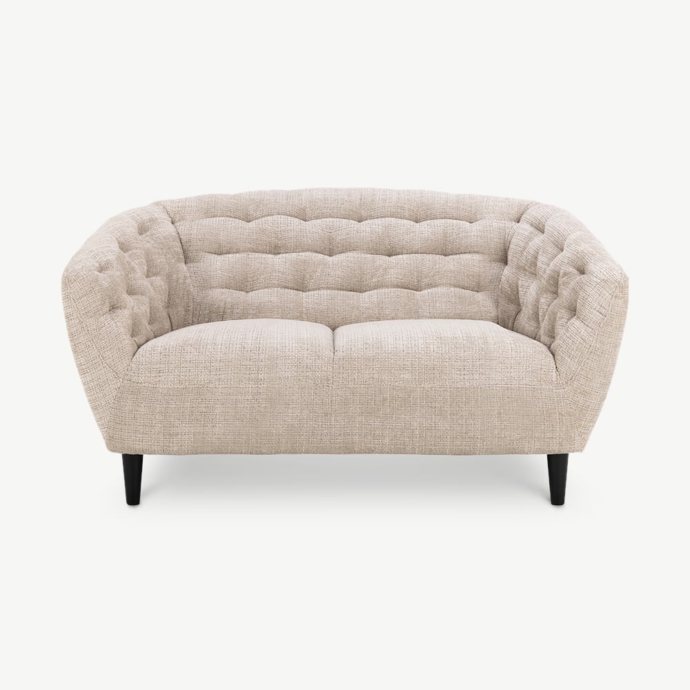 Le canapé 2 places Aria allie élégance, confort et format compact. Revêtu d’un tissu texturé crème doux, son dossier subtilement capitonné et ses lignes courbes créent un espace de détente à la fois raffiné et chaleureux. Ses pieds en bois noir fuselés et arrondis lui confèrent une touche moderne, parfaite pour les intérieurs contemporains ou classiques revisités.