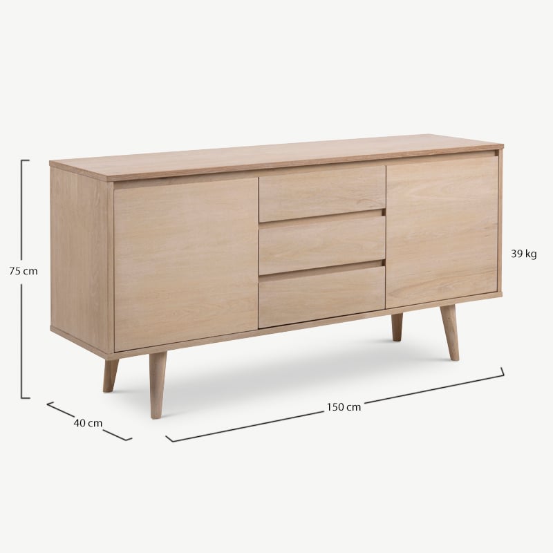 Le buffet Saeko en chêne naturel trouvera sa place dans une grande variété d'intérieurs.