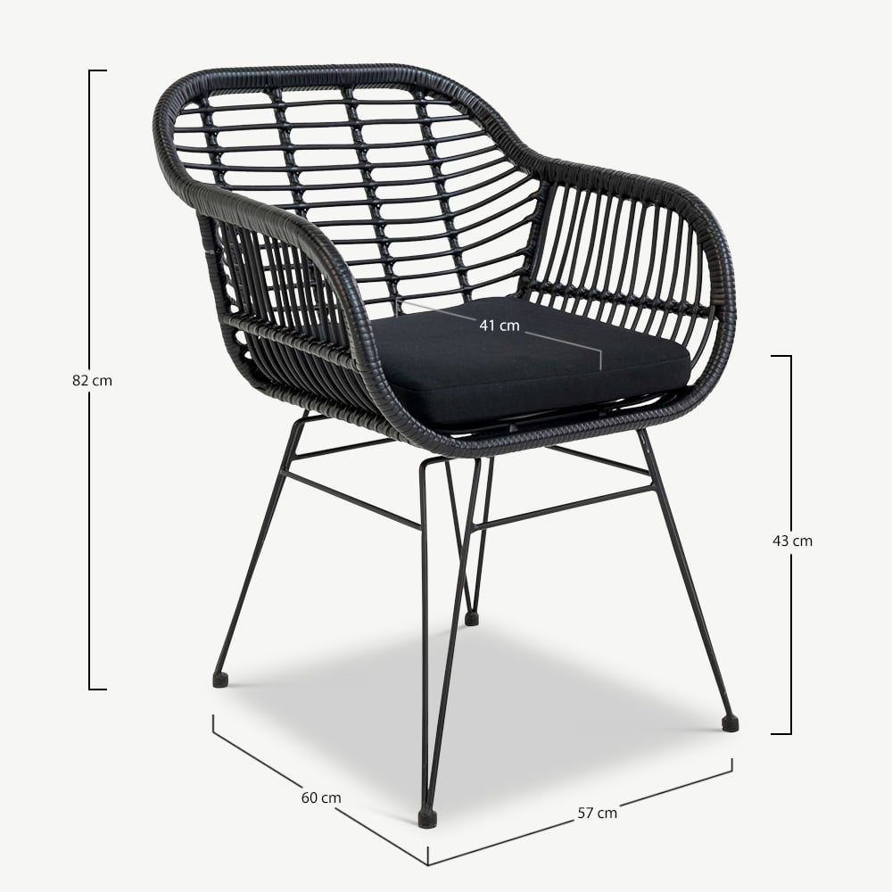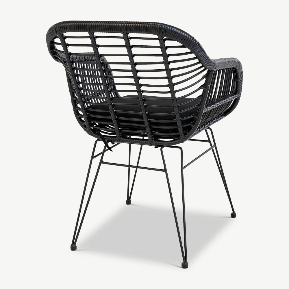 Chaise à manger d'extérieur Terry, rotin noir