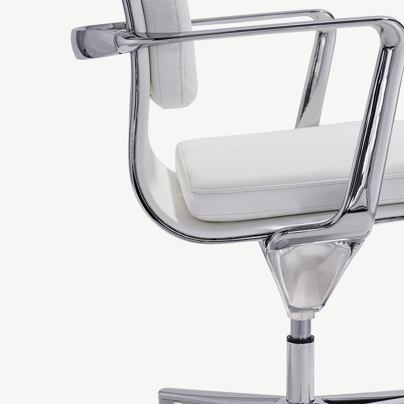 Chaise de Conférence Levi, Cuir Blanc, Dossier Haut