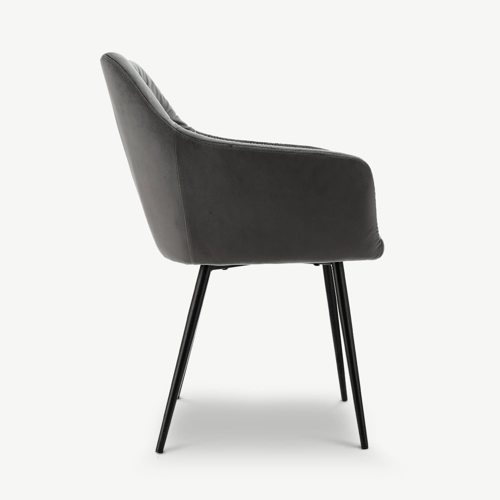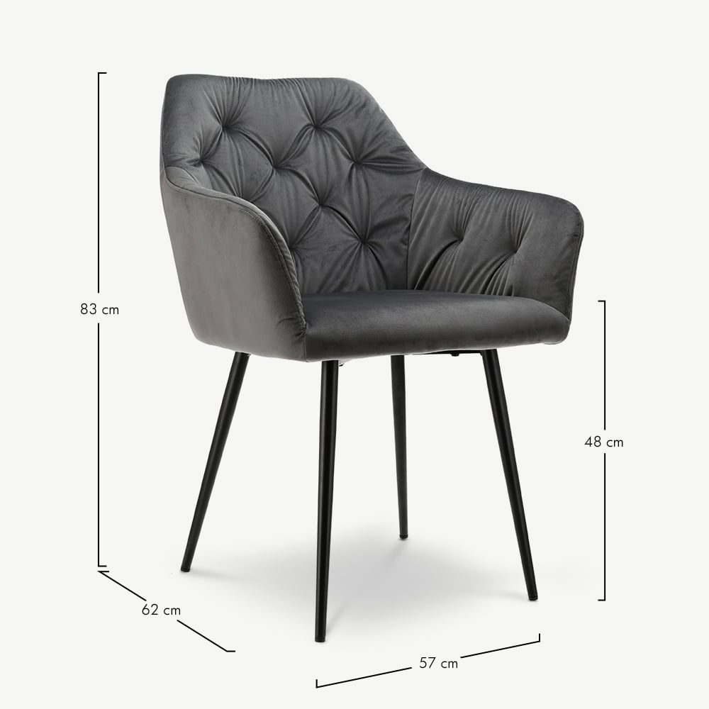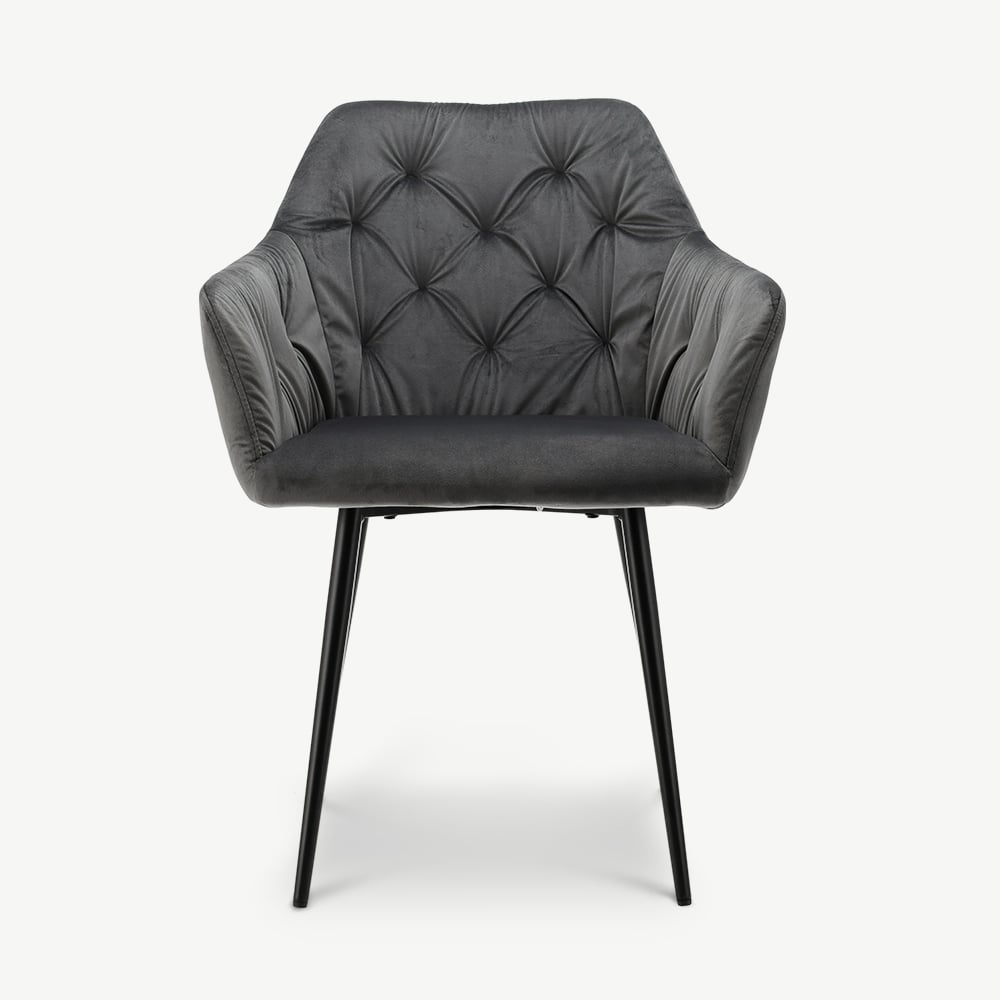 Fauteuil de Salle à Manger Vinny en Velours Gris Capitonné avec Pieds Métal Noir