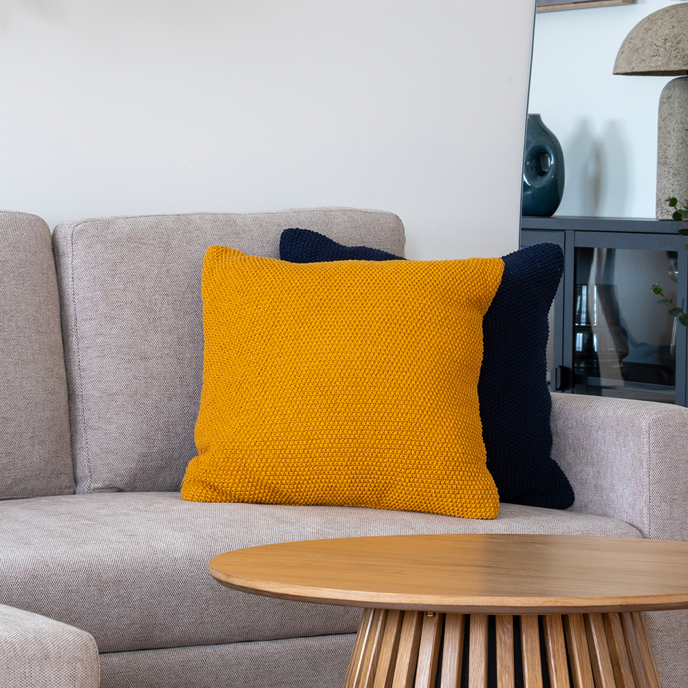 Le coussin Kara en ocre apporte une énergie solaire et un confort décontracté à votre intérieur. Fabriqué en coton recyclé, il allie douceur et démarche écoresponsable, avec un tissage subtilement texturé et une teinte terreuse qui réchauffe instantanément l’atmosphère.
