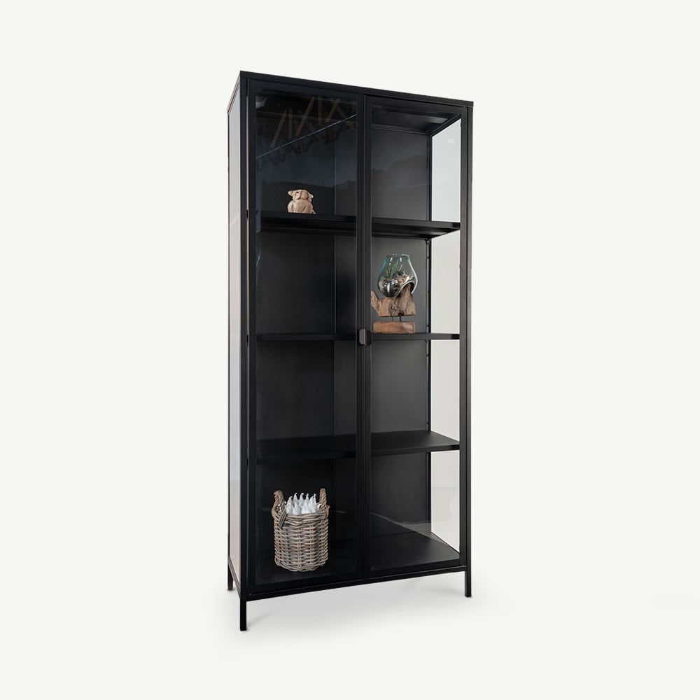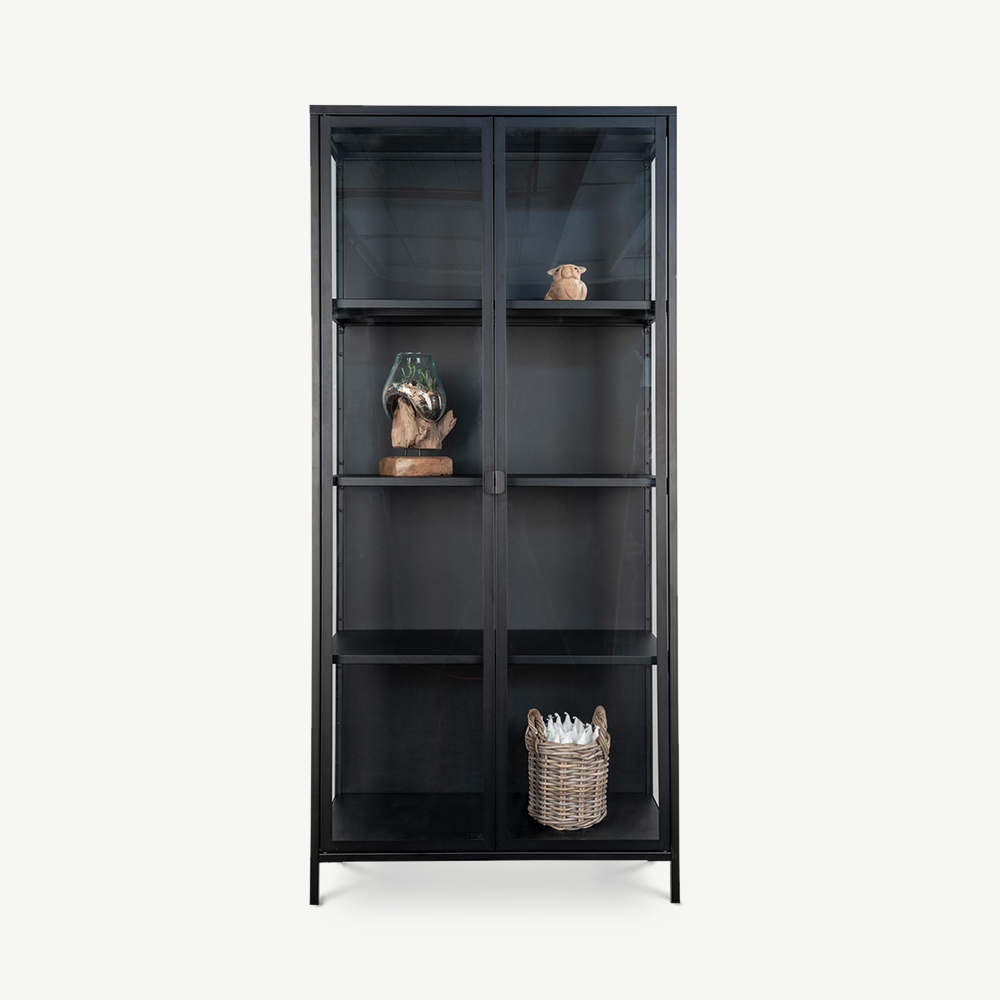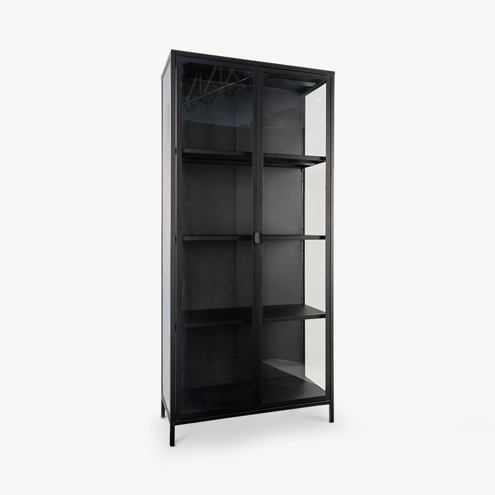 Fabriquée avec un cadre solide en métal noir et des portes en verre, la vitrine Darwin allie robustesse et style. Son design industriel épuré s’intègre parfaitement aux intérieurs contemporains, inspirés des lofts ou minimalistes. Associez-la à des tons bois chaleureux, des textiles doux ou des accents métalliques pour créer un espace équilibré et accueillant.