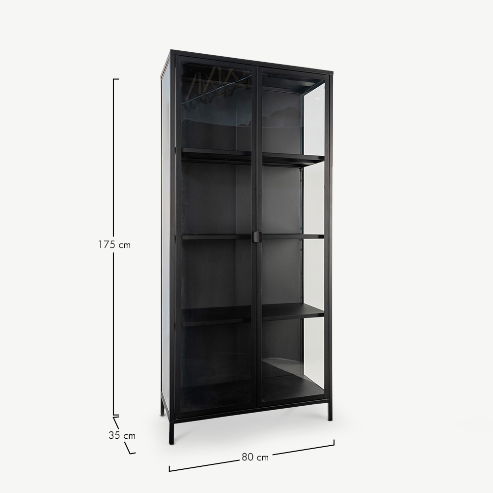 Avec son cadre en métal noir élégant et ses portes en verre, la vitrine Darwin apporte une touche industrielle raffinée à votre intérieur. Son design minimaliste ajoute une note sophistiquée, créant un point focal dans n’importe quelle pièce. Que ce soit comme solution de rangement ou élément décoratif, elle rehausse votre espace avec style et fonctionnalité.